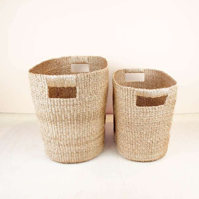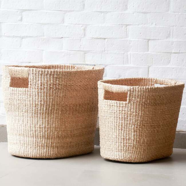 Elevate your storage solutions with our Set of 2 Natural Oval Baskets, meticulously handwoven by Filipino artisans using sustainable abaca fibers sourced from the Philippines. These timeless pieces combine functionality with natural beauty, showcasing the artistry of Filipino craftsmanship. Each basket offers ample space for organizing everyday essentials while adding a touch of eco-conscious style to any space. Whether used for storing blankets, magazines, or toys, these versatile baskets are a stylish addition to your home decor. Choose sustainability with LIKHA's Natural Oval Baskets a perfect blend of traditional craftsmanship and modern design. Since each piece is handwoven, please expect slight variation in design, color, shape, and size.
