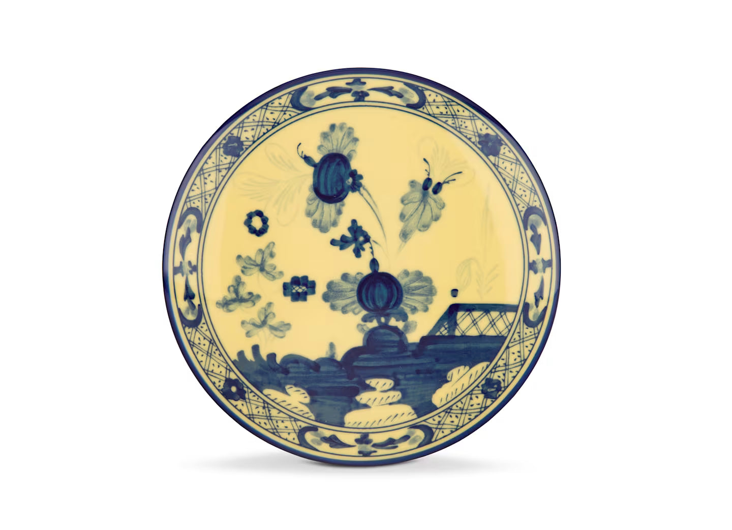 Its sinuous shape and accurate detailing reflect a craftsmanship that makes this box not only a functional object, but also a symbol of good taste and refinement. It is the porcelain designer box featuring a citrine yellow pattern from the Oriente Italiano collection, whose muted tone fits gracefully into neutral or pastel-colored settings, giving any space a touch of understated luxury.