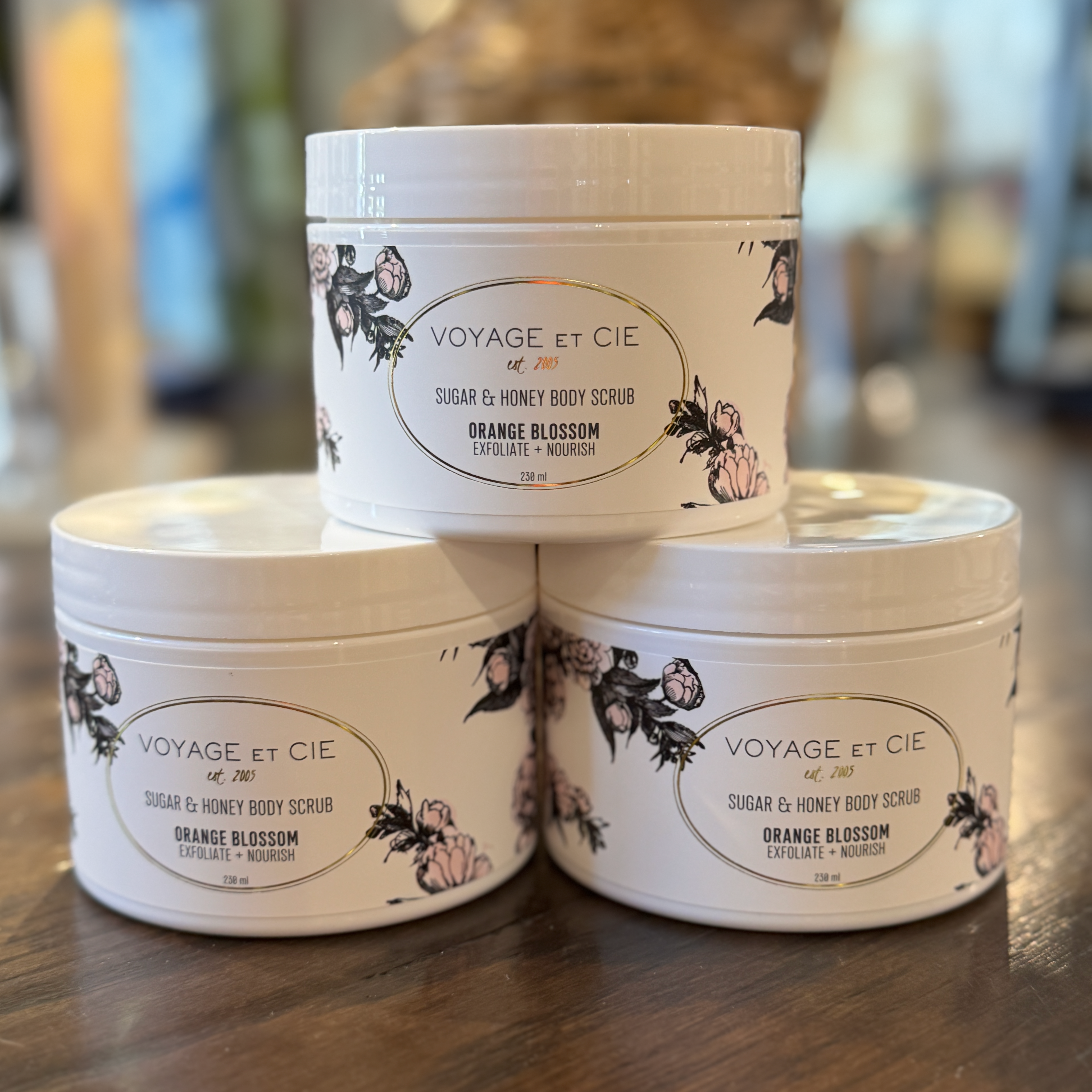 Certified Organic Cane Sugar gently exfoliates. Lifting away dead skin cells, while deeply moisturizing shea butter, coconut butter, and honey replenish hydration-leaving skin irresistibly smooth, soft, and supple. Antioxidant-rich grape-seed oil, and vitamin E, along with renewing agave Americana, calendula, and hibiscus provide extra nourishment. Use daily in the shower.