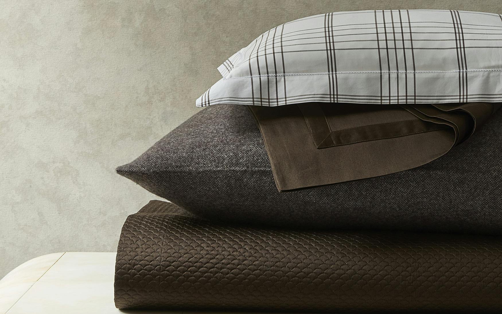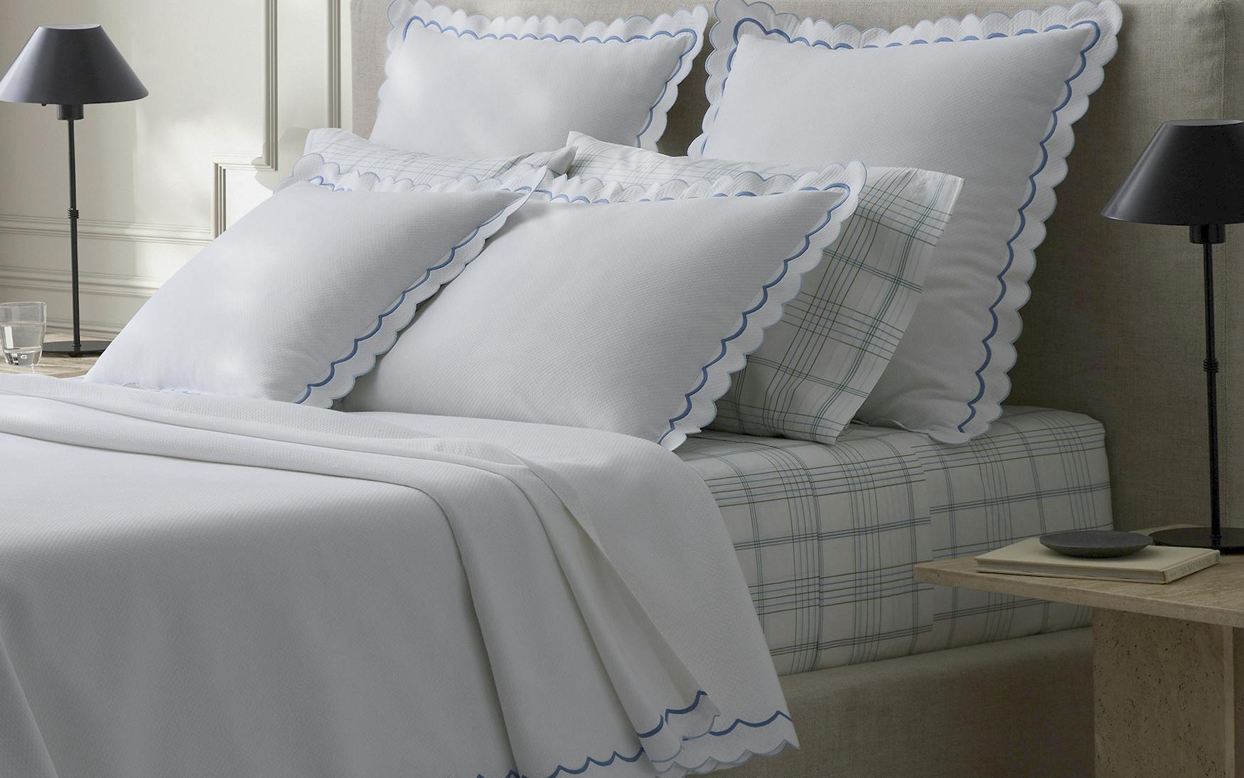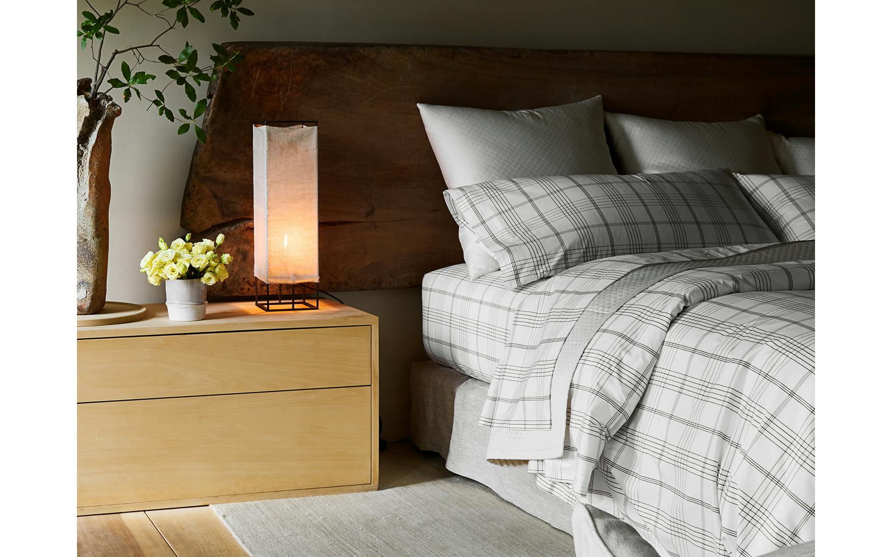 A fresh take on a classic, August Plaid presents an elegant reworking of Schumacher's archive check pattern. Each colorway features two tonal shades finely interwoven in a 500 thread count cotton percale, with a special finish that delivers a remarkably smooth hand-feel. Hemstitch detailing adds a clean, artisanal touch—an elevated style for the modern primary bedroom.