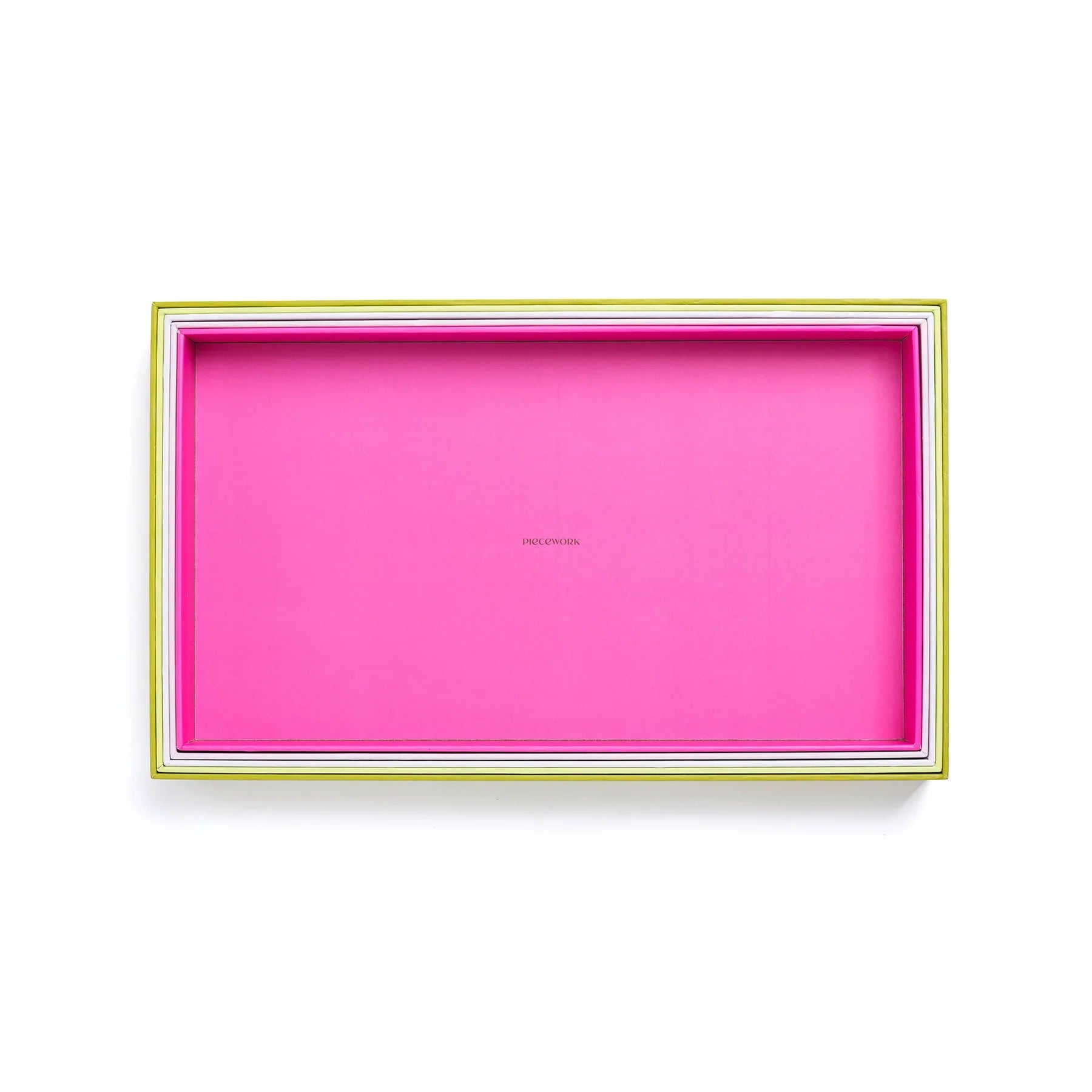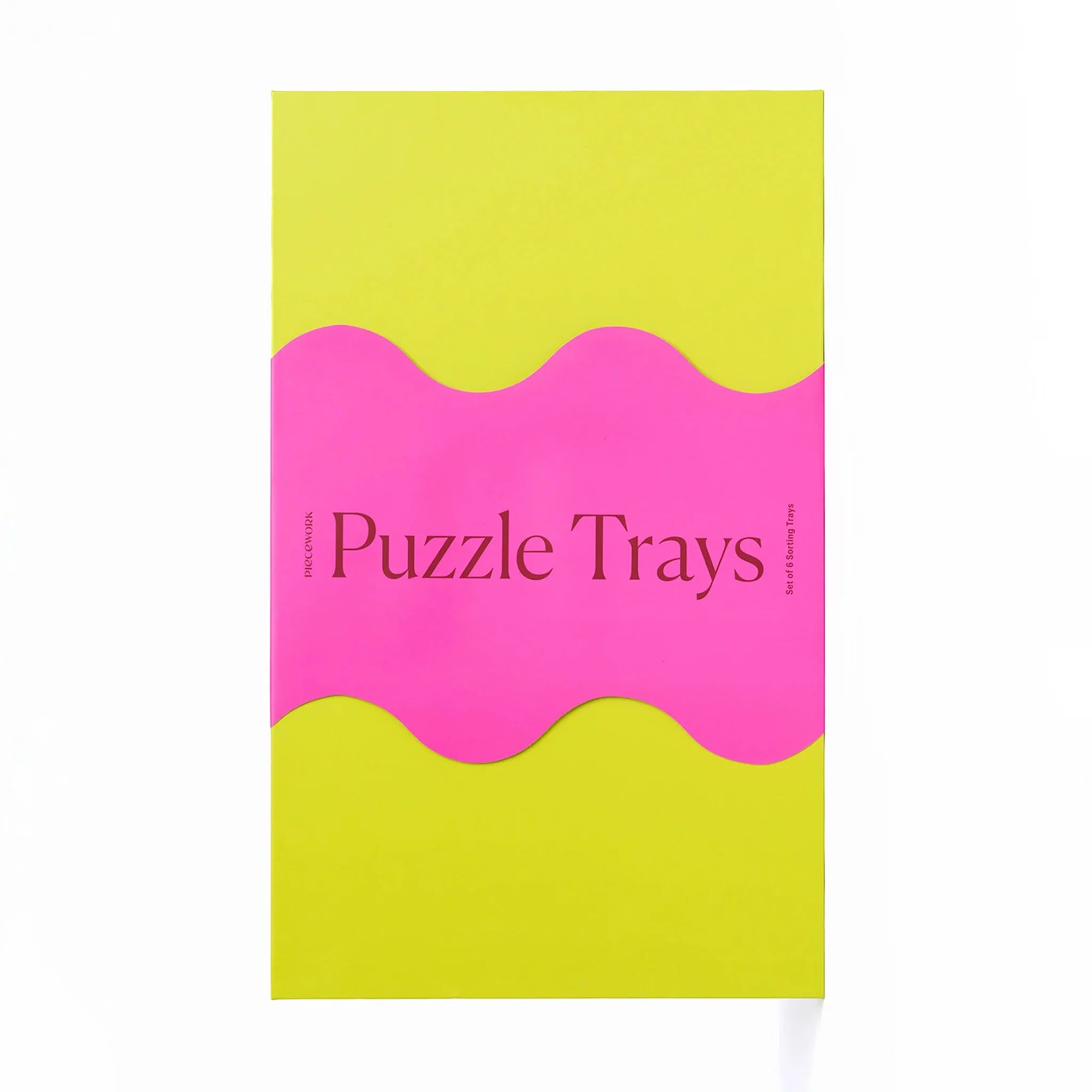 Pass the pieces! This set of six colorful nesting puzzle trays offer the perfect setup for working on a puzzle. After spending thousands of hours thinking about and working on puzzles, Piecework Puzzle's decided to make their own ideal jigsaw accessory.