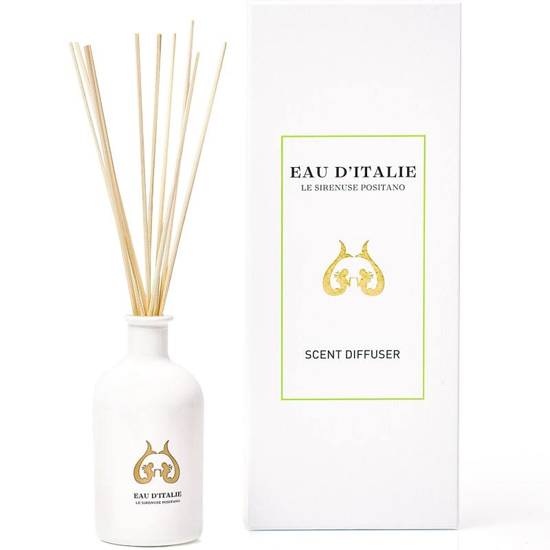 A gorgeously elegant scent diffuser that will take you straight back to Le Sirenuse with the Eau d'Italie signature fragrance.An unforgettable memory of romantic summer evenings overlooking the bay of Positano, with notes of bergamot, incense and blackcurrant buds.A light sea breeze and cool citrus groves on the cliffs of Positano. Terracotta tiles warmed by the summer sun. Bergamot, blackcurrant buds and yellow sweet clover. A hint of musk, a touch of incense. A sparkling and seamlessly blended scent.Lovingly hand-poured in Italy in small batches.