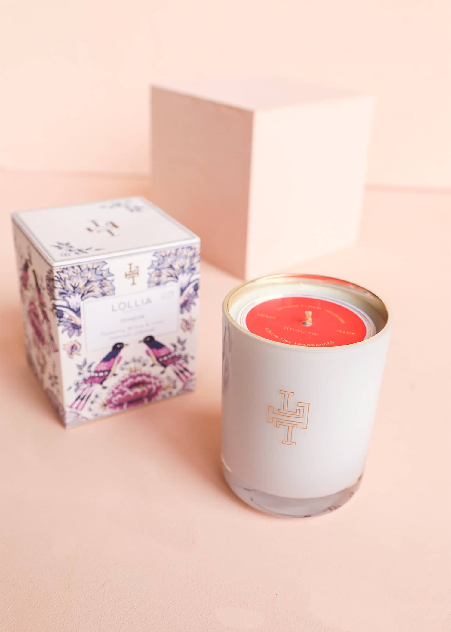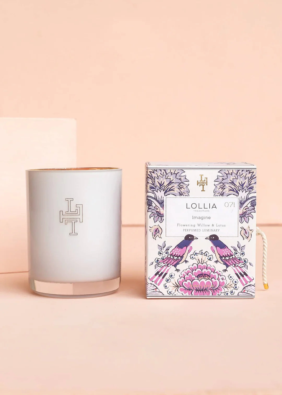 Elevate your space with a floral fragrance impression of the most beautiful day imaginable. Enveloped in a fine soy wax blend, Flowering Willow & Lotus float in then flutter away, leaving a trace of Orchid on their wings. Breezy Rice Flower and Coconut Milk mingle with dew drop notes of Mandarin and Jasmine petals in sun-kissed sophistication. Chic & sophisticated, modern monogrammed white glass is washed in gold, casting a truly captivating glow