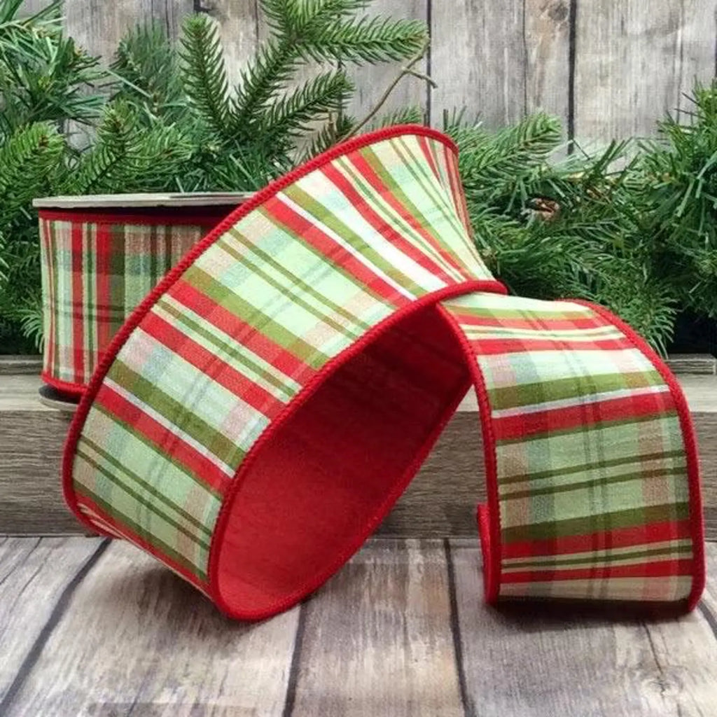 Roll Dupion Plaid Red/Green Apple-2.5"