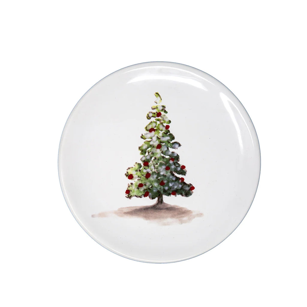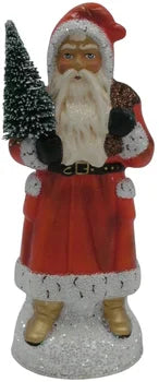 Old St. Nick Rimmed Sq Platter with Teddy Bear - Small