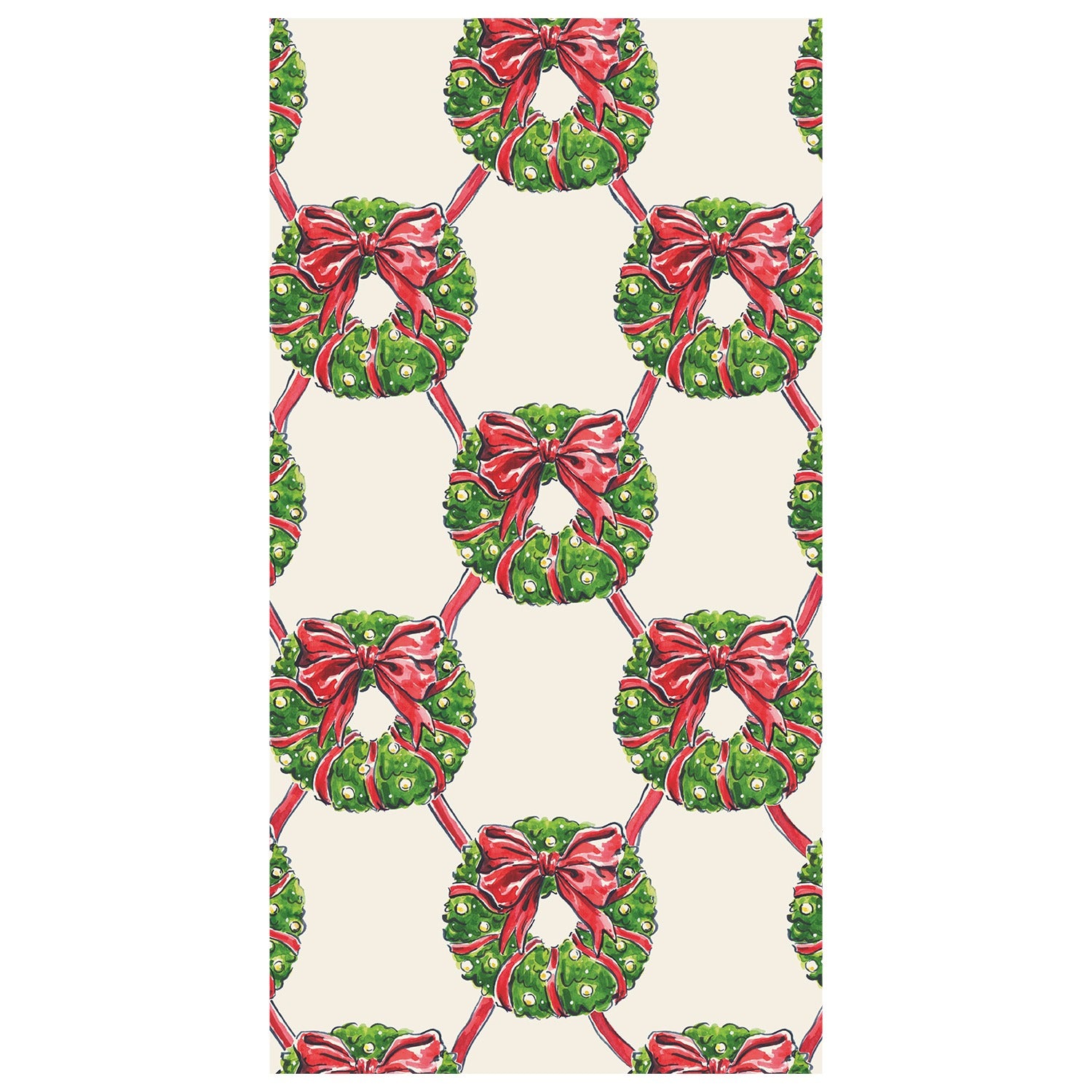 The Holiday Wreath Guest Napkins are a classic way to add holiday cheer to your seasonal soirees. Featuring an abundance of wreaths and sweet ribbons, these napkins put a bow on all of your holiday gatherings. Beside the plate, on the bar, or throughout the home, Hester & Cook napkins are an elegant addition to any occasion and coordinate with many of your favorite designs.