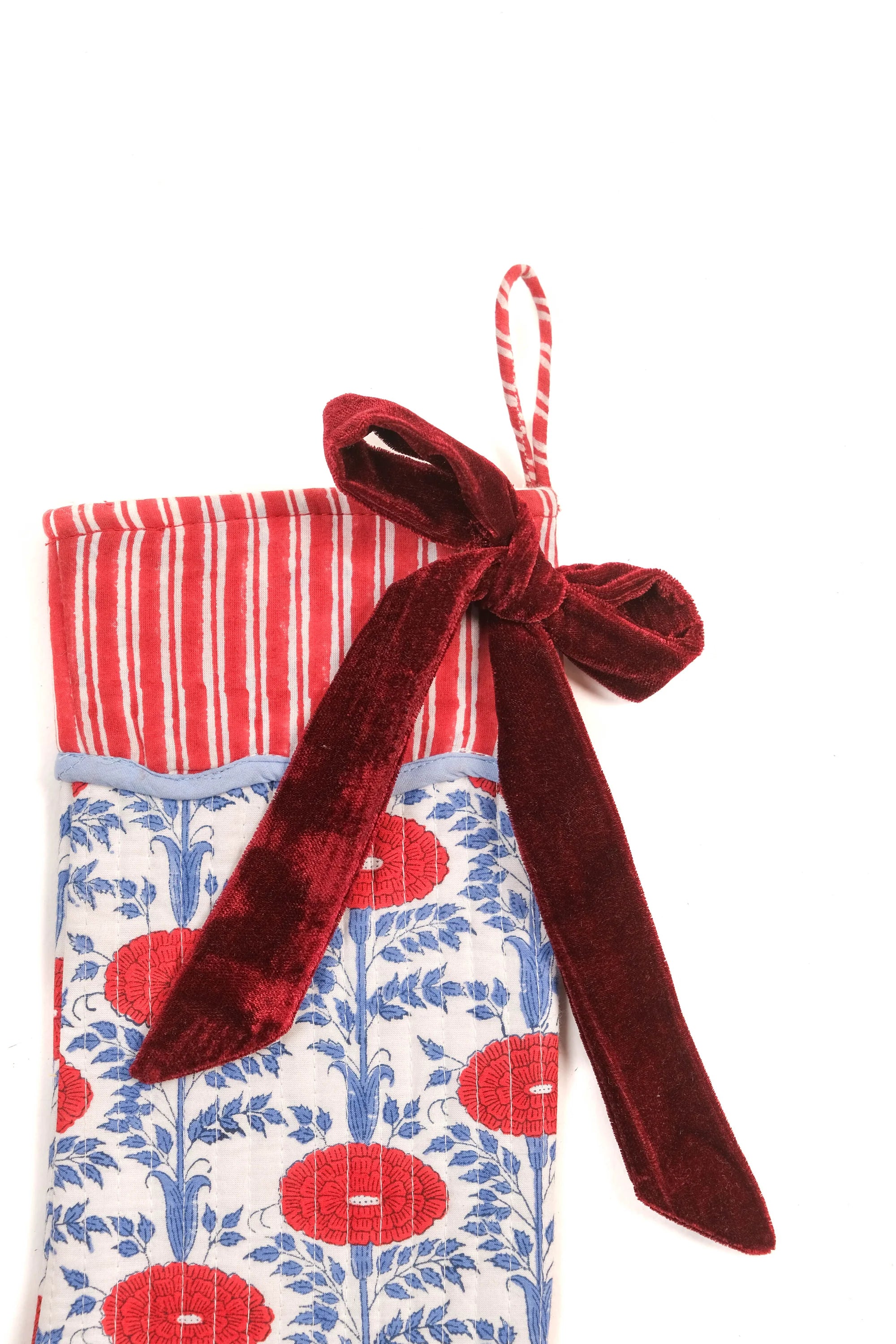Our bestselling Araminta block print stockings are the perfect blend of festive flair and artisan craftsmanship. Each stocking is a little work of art, block-printed with beautiful blooms and finished with a velvet bow that'll make Santa stop in his tracks. Fill them with goodies or just admire their charm — either way, they're sure to steal the spotlight this holiday season!