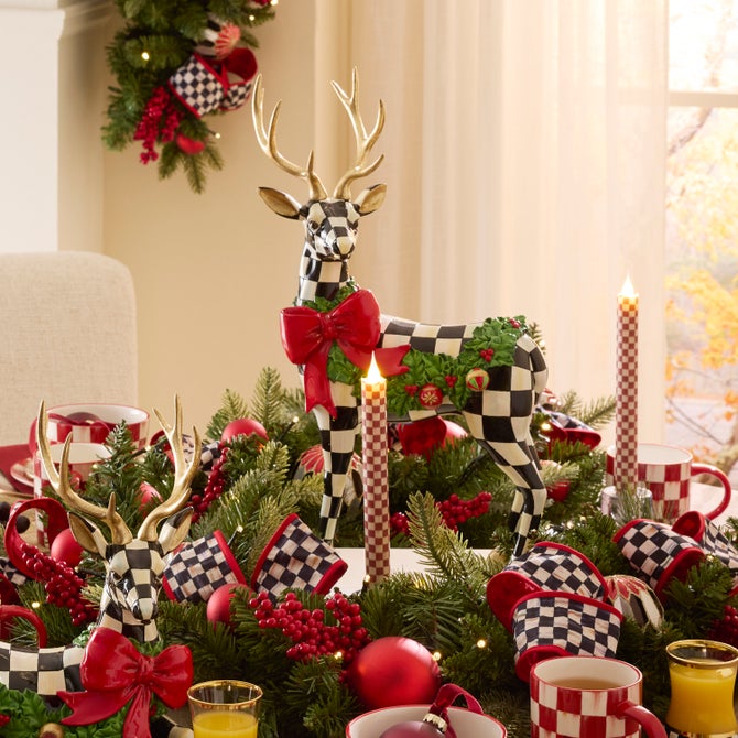 Celebrate the magic of the season with the Holly Check Standing Deer. This whimsical deer, decorated with Courtly Checks, offers a tranquil, holiday-inspired look, perfect for adding classic charm to your decor.