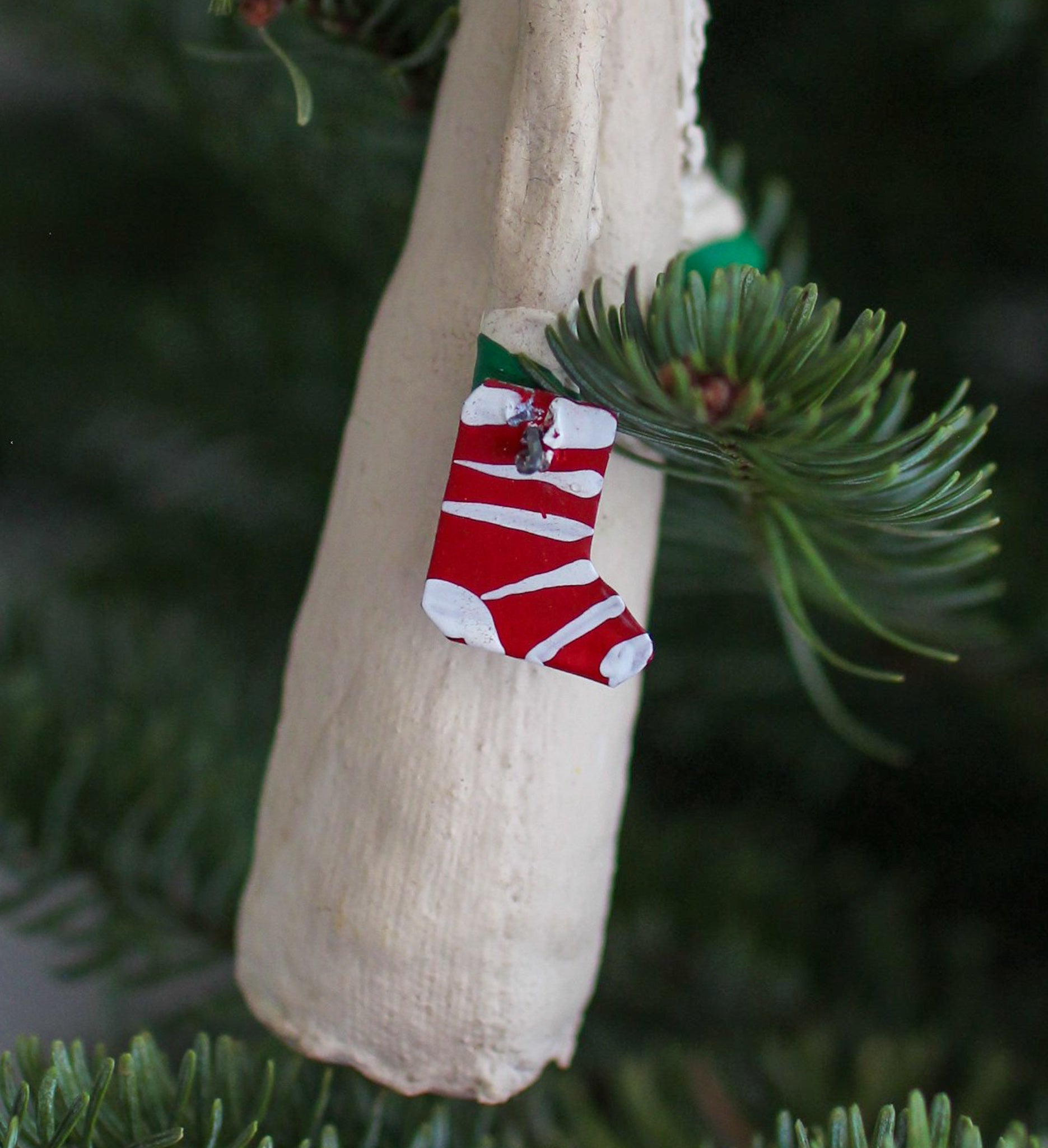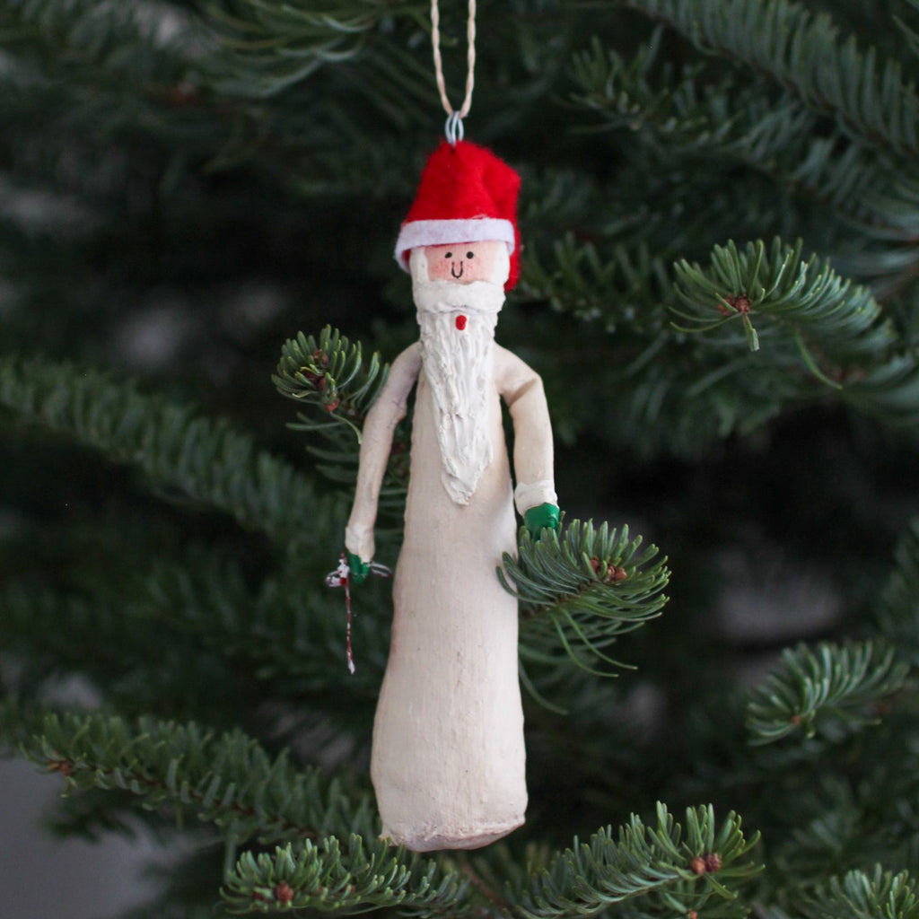 Vintage-inspired Santa with stocking ornament. Crafted from durable canvas cloth with a painted finish, making him perfect for displaying on your mantel, shelf, or tabletop.