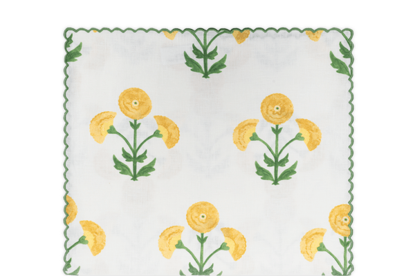 Artful, refined and whimsical all at once, this original Schumacher print comes to life with blooming bouquets. Inspired by traditional block prints, Gisele is made on crisp linen and finished with an eye-catching scallop embroidery.