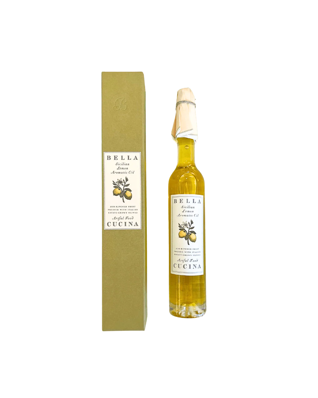 A golden infusion of estate-grown Italian olive oil and the bright, citrus essence of Sicilian lemons. Crafted in small batches, this aromatic oil captures the fresh, sun-ripened flavor of Mediterranean citrus, perfect for enhancing simple dishes with a touch of brightness. Drizzle over grilled vegetables, seafood, and pasta, whisk into a vinaigrette, or finish a dish with its delicate citrus aroma. Beautifully packaged in a signature Bella Cucina box, it makes a refined addition to any kitchen or a thoughtful gourmet gift.