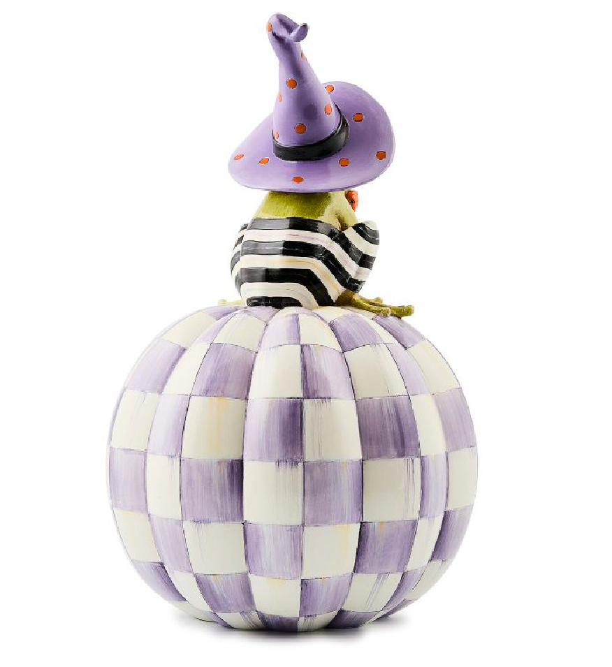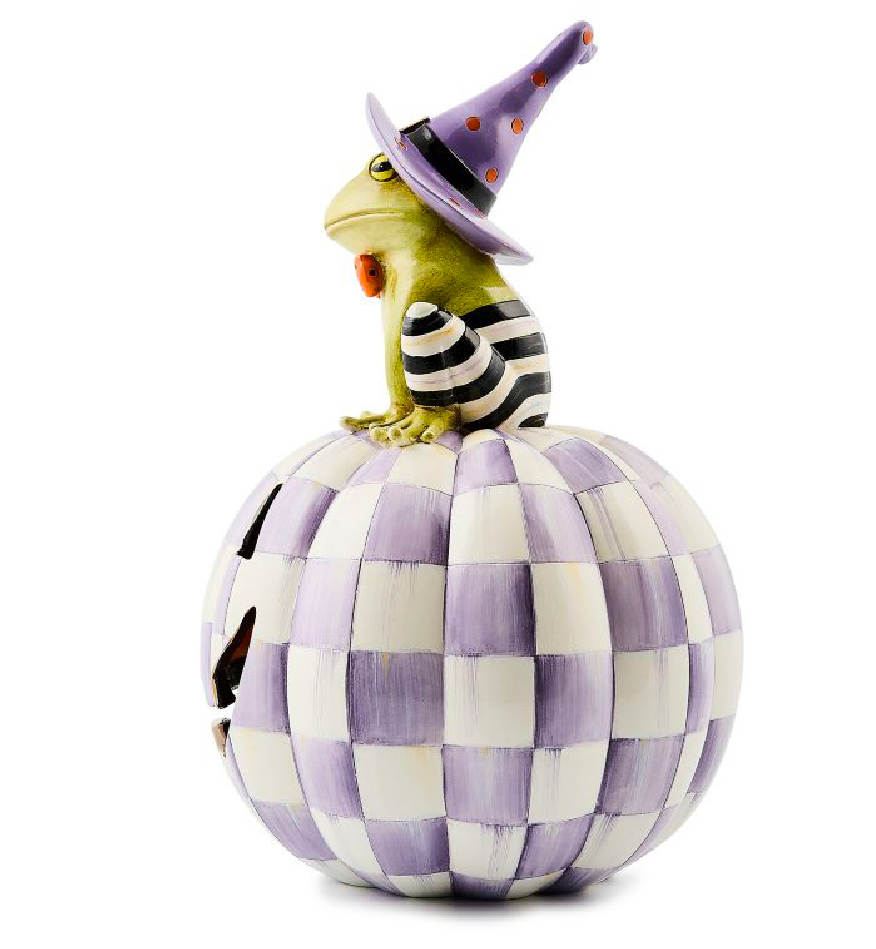 Light up your Halloween festivities with the MacKenzie-Childs' Halloween Fergal Jack O'Lantern. This charming piece features a whimsical design with a glowing interior that adds a festive touch to your autumn décor. Perfect for welcoming trick-or-treaters, its unique craftsmanship makes it a standout addition to any Halloween display.