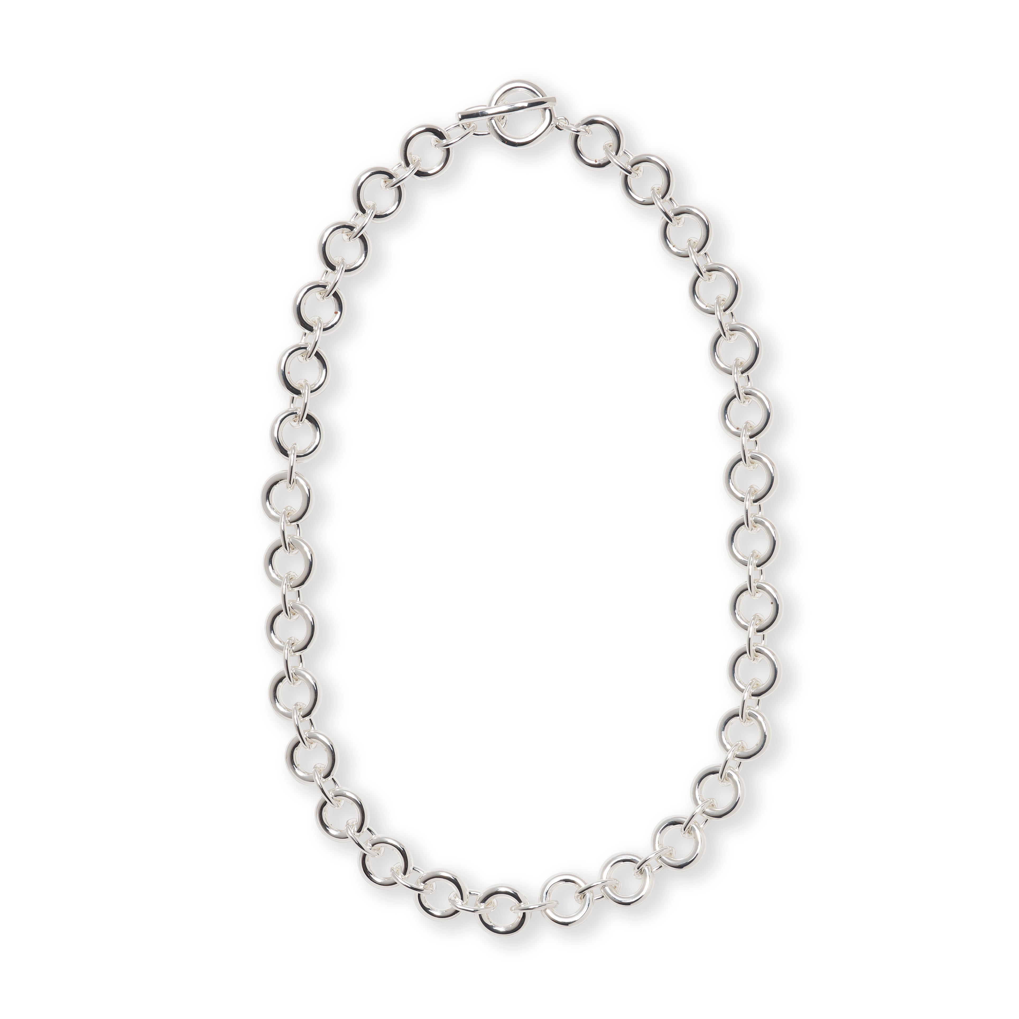 The Mood Necklace in Gold features gold-plated brass round links with toggle closure.