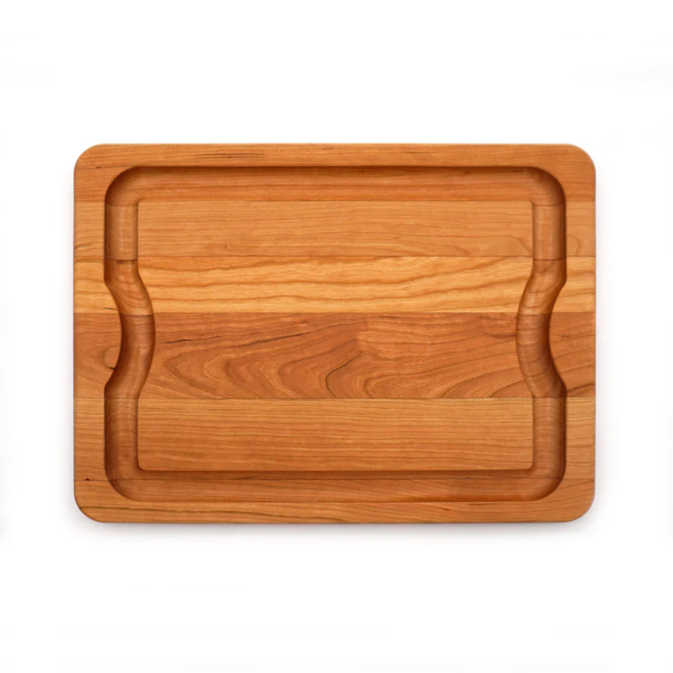 Our Cherry BBQ Carving Board, 16"x 12", is sized for cooking for two. This board offers a juice groove around the perimeter and undercut handles. Just the right size for a roasting chicken or prepping a weeknight meal.