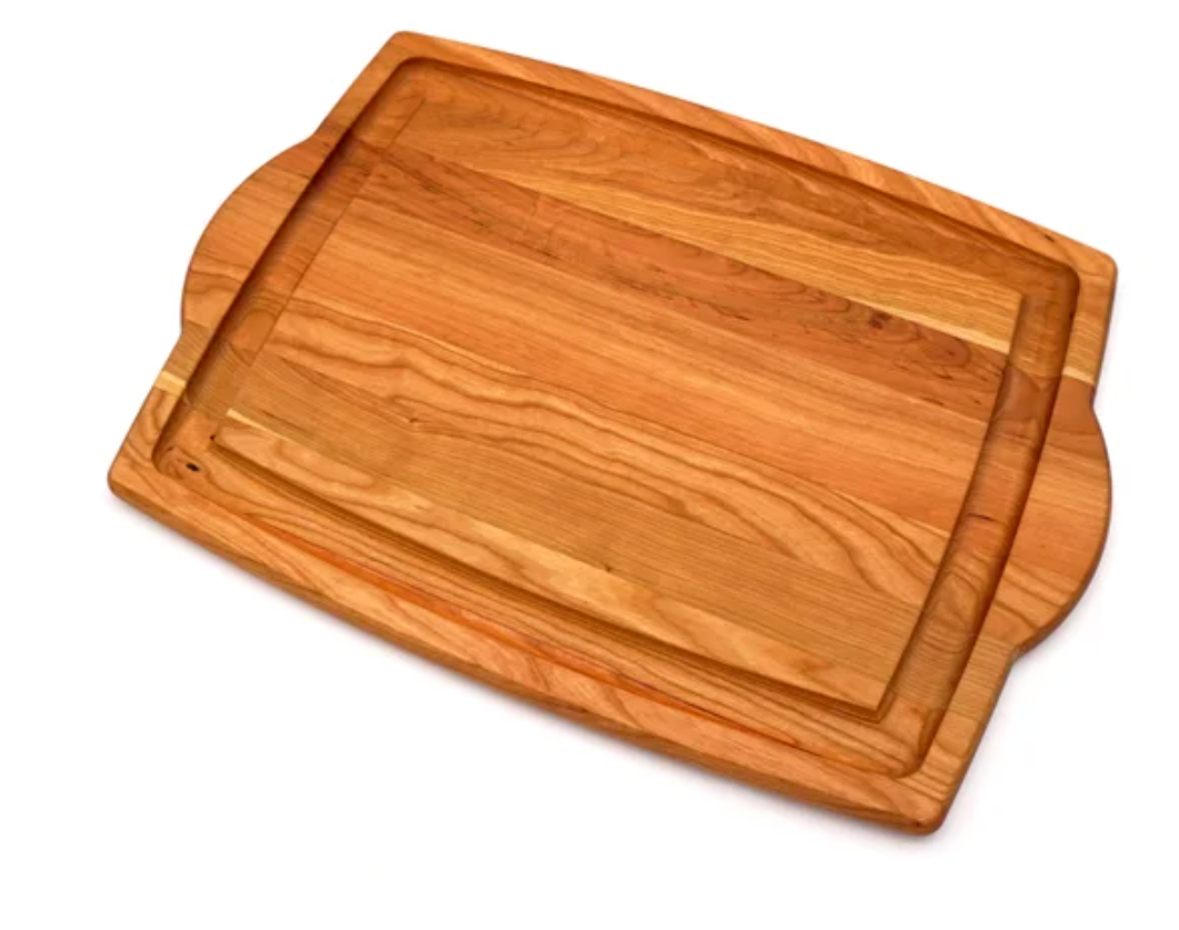 The Cherry Carving Board is a classic board that can handle a variety of prep in the kitchen. The board has a juice groove around the perimeter with a well for the juices to pool. This is a great function for making gravy and au jus. The board's surface space is also ample enough for chopping and dicing vegetables.