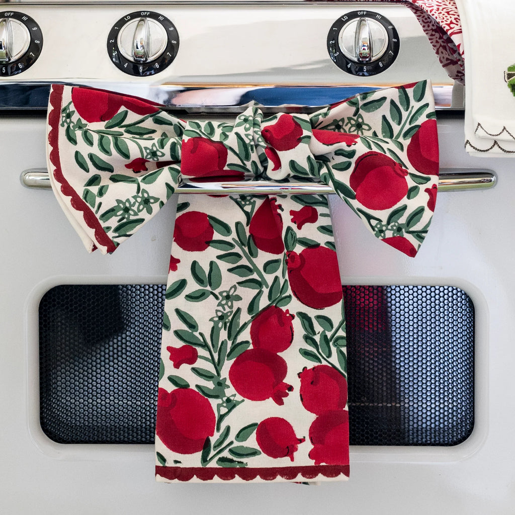Bring a sprinkle of festive flair to your kitchen with the Pomegranate Collection. Features a hand-blocked pomegranate design that adds a lively pop of color to your kitchen décor. Whether given as a thoughtful gift or used to brighten your own kitchen, this collection is a perfect mix of practicality and style.