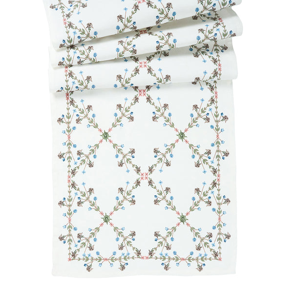 With pure white linen as fresh as cream and a delightful lattice motif of folkloric wildflowers in greens, blues and pinks inspired by the Spanish countryside, this table runner enlivens any table setting and mixes and matches like a dream. Perfect for spring brunches, breezy summer lunches and imagined tea parties with Marie Antoinette (we could not resist).