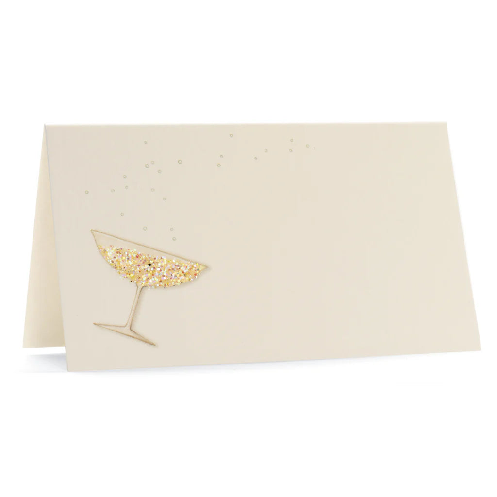 Add the charm to every table at your next event with this celebratory design that shines. The glitter embellishments on the illustration against a natural white paper backdrop make these place cards a lovely keepsake.
