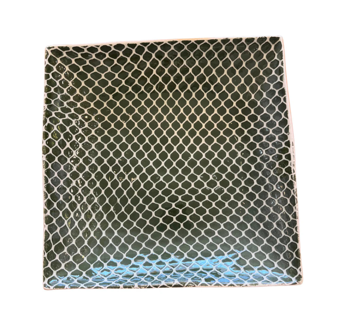 Terrafirma Ceramics products are made entirely by hand and kiln-fired to extremely high temperatures, giving each piece its own personality and great durability. Slight variations in color, texture and surface blushing are the natural and desired result of the hand building and high-firing process and assures each piece of its individuality. Patterns are created by painting through textiles and lace using liquid porcelain to produce a distinctive "one of a kind" result.
