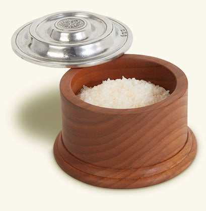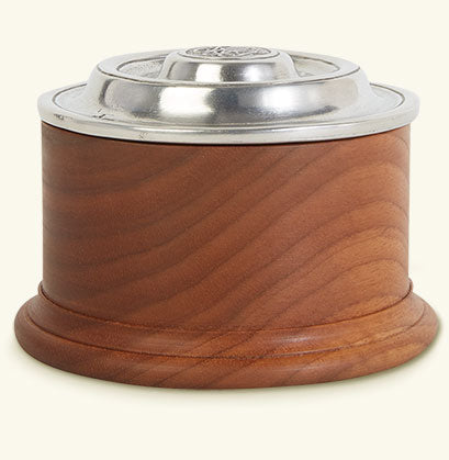 This functional container will be at home in any kitchen, and cooks will love the ease of the swivel pewter top on a beautiful walnut base.