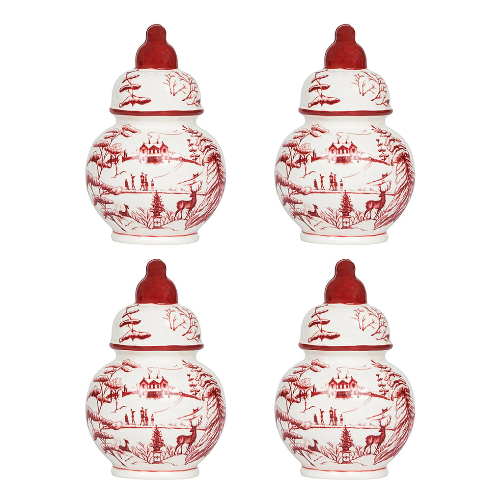 Country Estate Winter Frolic Ginger Jar Place Card Holders - Ruby