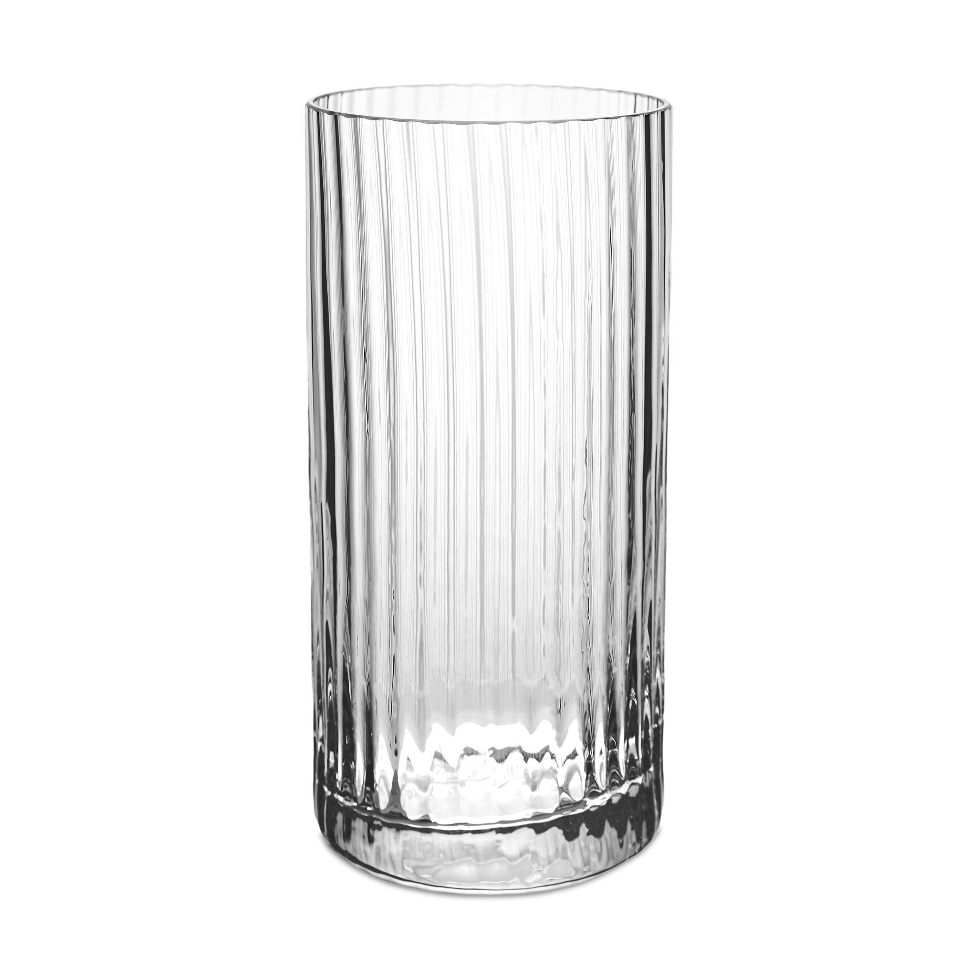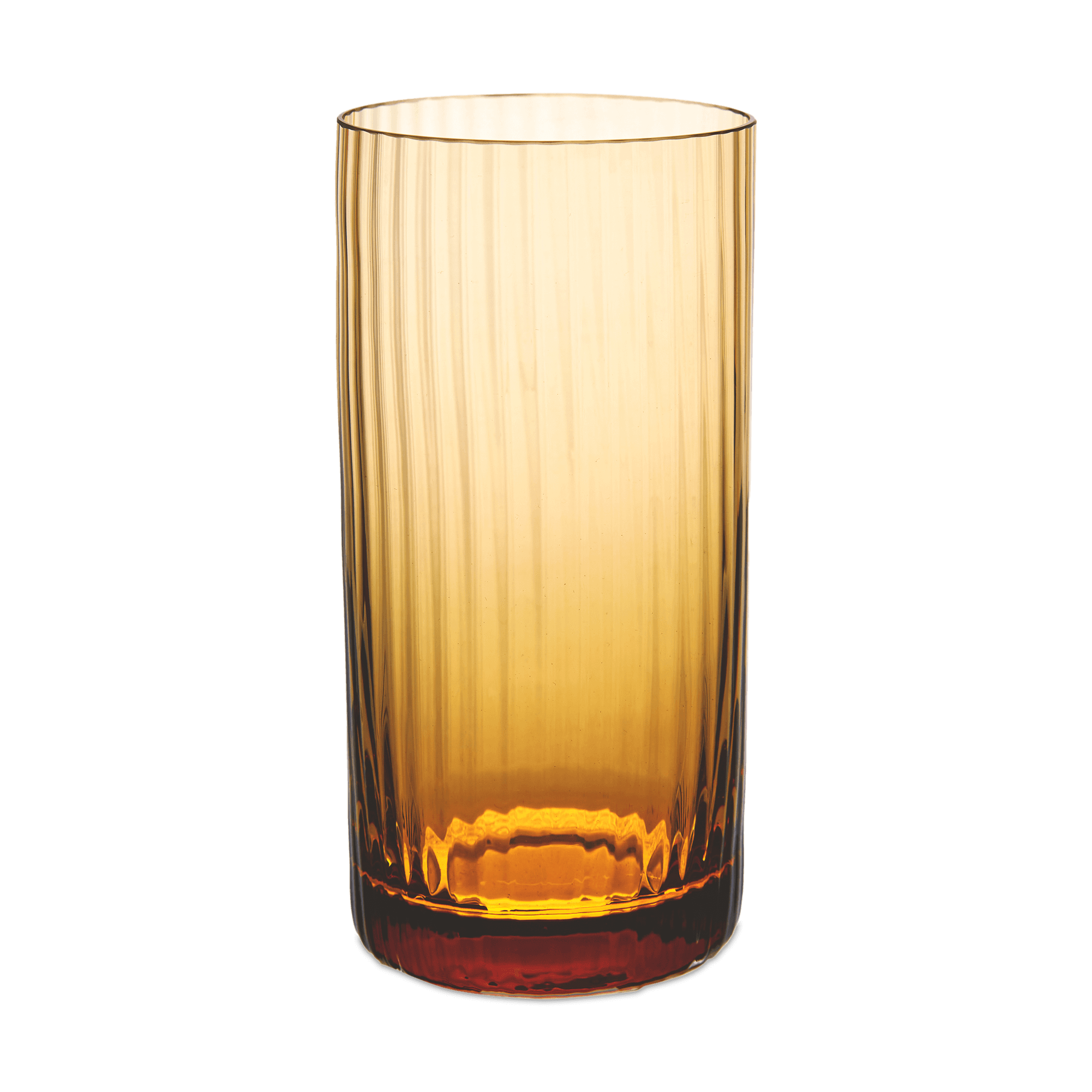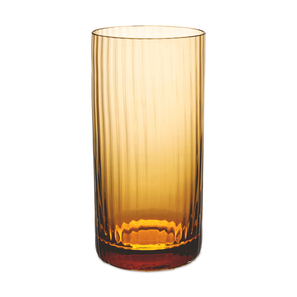 The cylindrical shape, traditionally used for gin & tonic or iced tea, brings a modern touch to the party. Balancing a substantial base with a refined hand-finished lip, this mouth-blown tumbler lends top-shelf artisanal character to a classic barware style. Elegant and unfussy, mix the three textures and joyful jewel tones to match the mood and moment.
