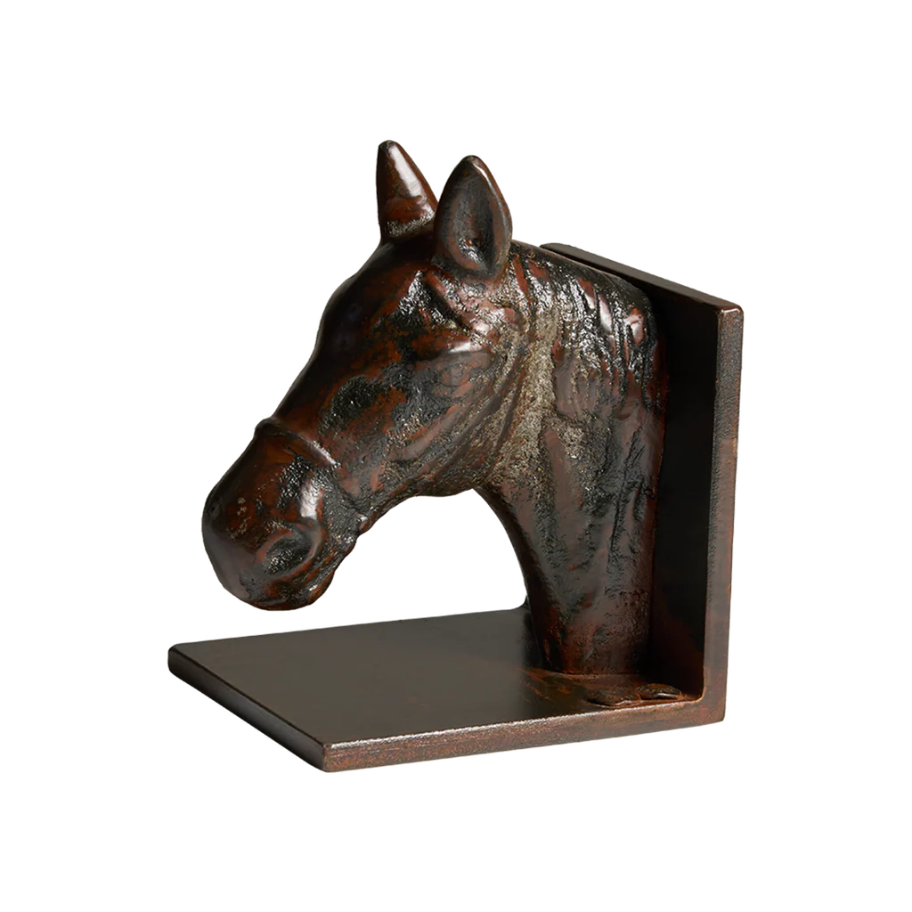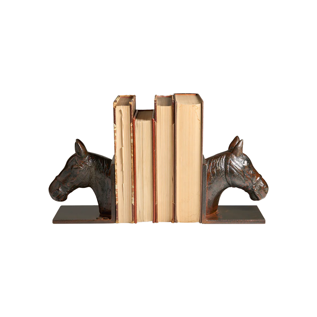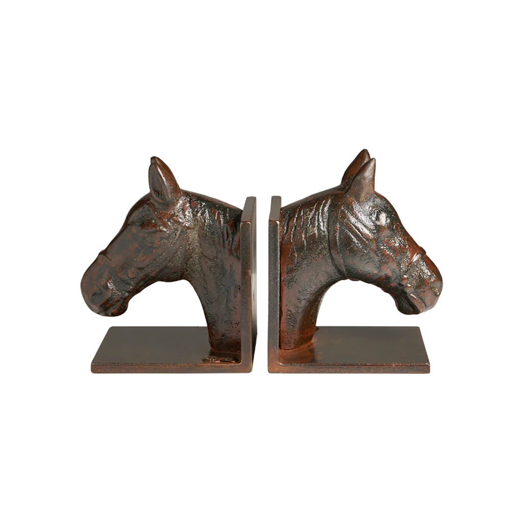 Wax cast iron horsehead bookends. Can also be used as door stops or paper weight.
