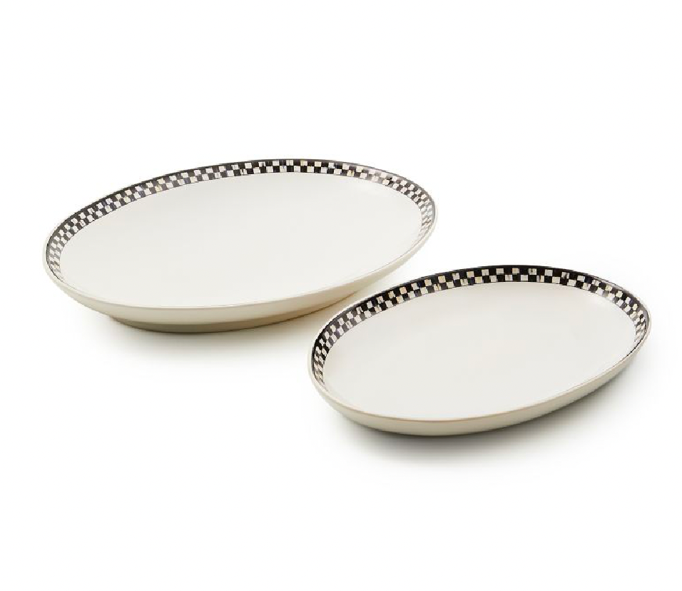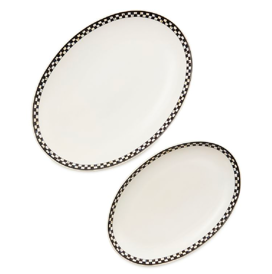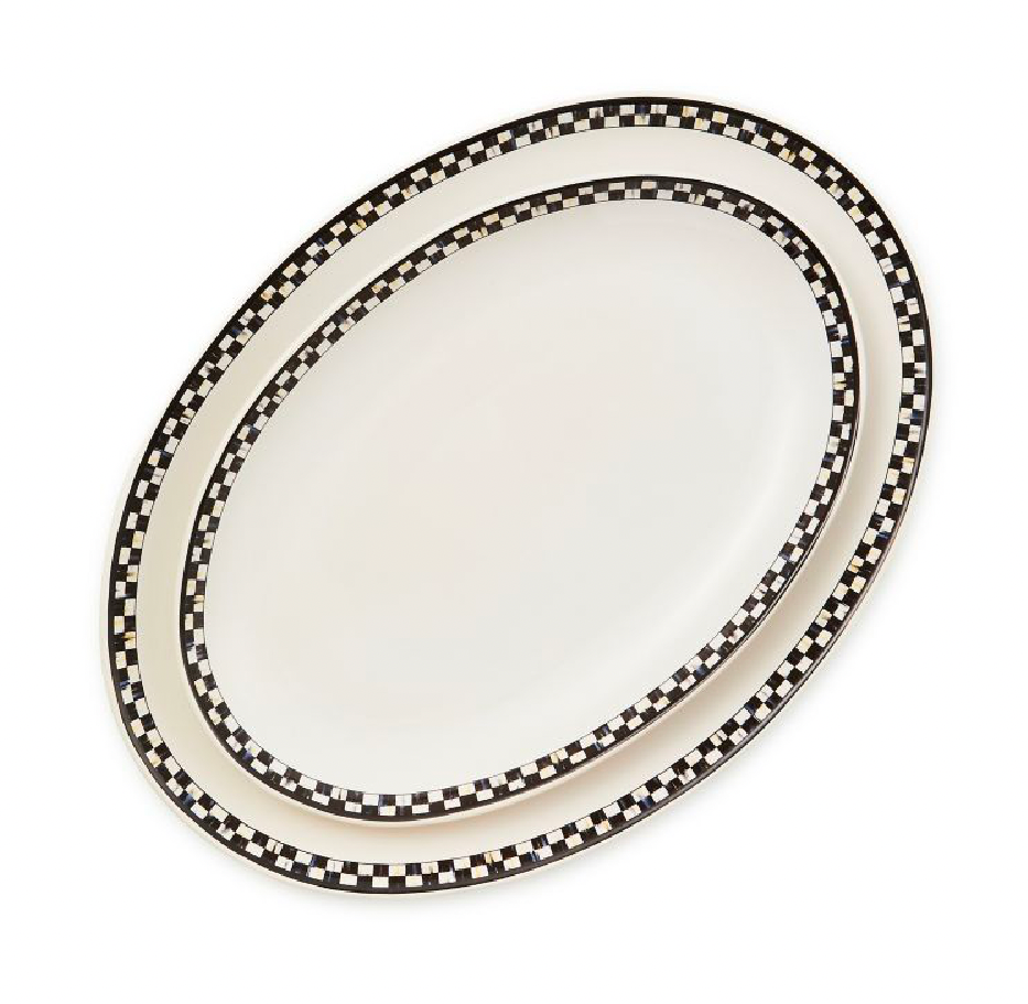The Courtly Check® Oval Platter is a great addition to the dinner or buffet table. Featuring checks hand-painted in a range of rosy hues over a steel underbody and is trimmed with a bronzed stainless-steel rim.