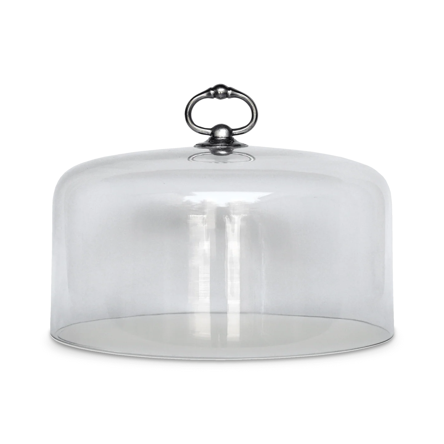 This exquisite glass and pewter cloche is the perfect way to showcase your best cakes, tarts, and cupcakes. It will keep your culinary creations fresh for days unless temptation gets to them first! (Shown here with the Toscana Pie Plate)