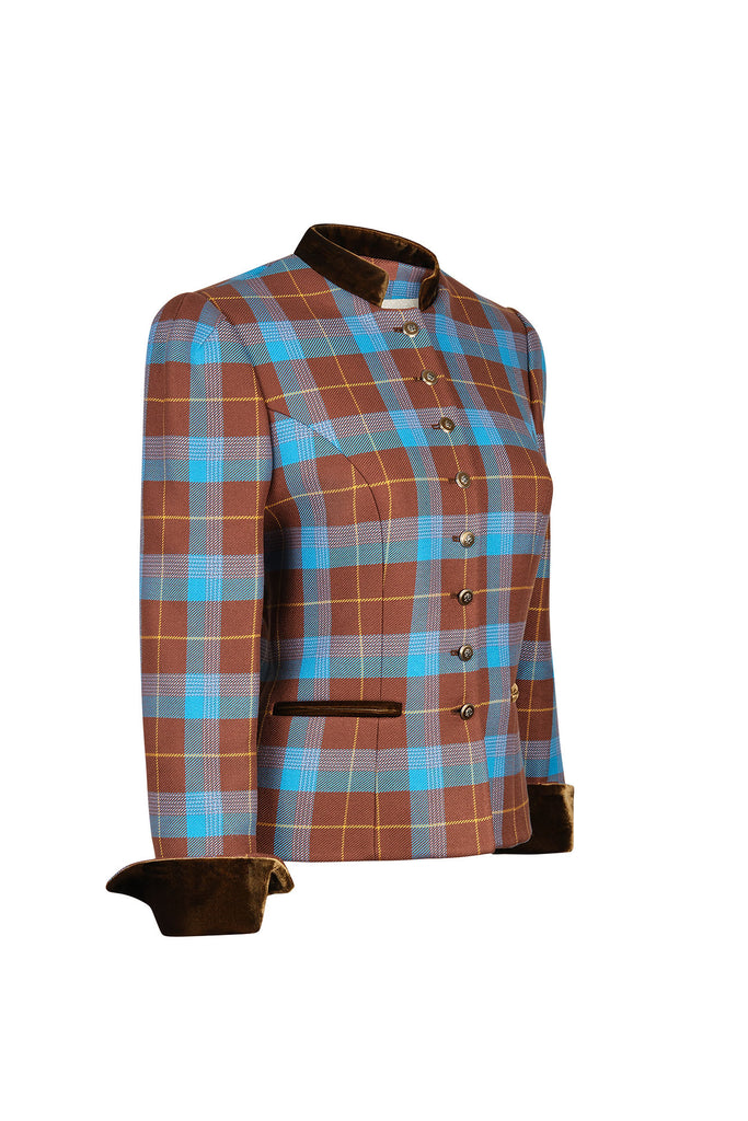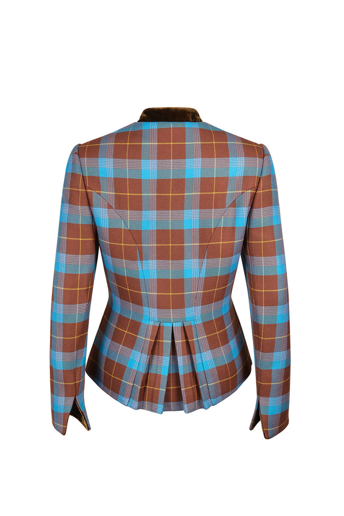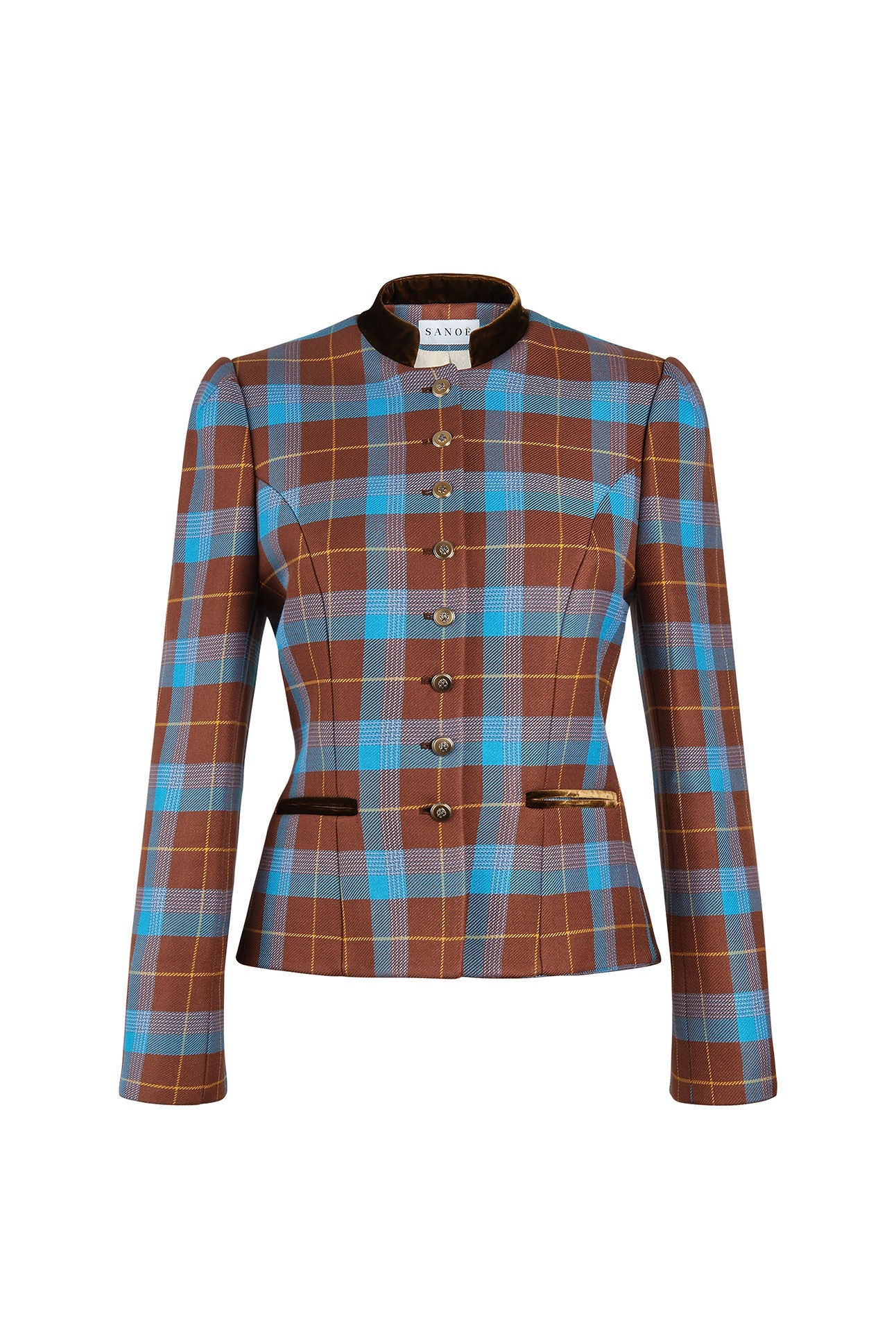 The Annabelle Terra jacket brings a rich colorway to a beloved classic. Crafted in a blue and brown checkered wool blend with a structured silhouette, it’s accented by luxurious gold buttons. Its timeless design and refined details make it a must-have for every season. A bestseller that’s here to stay.