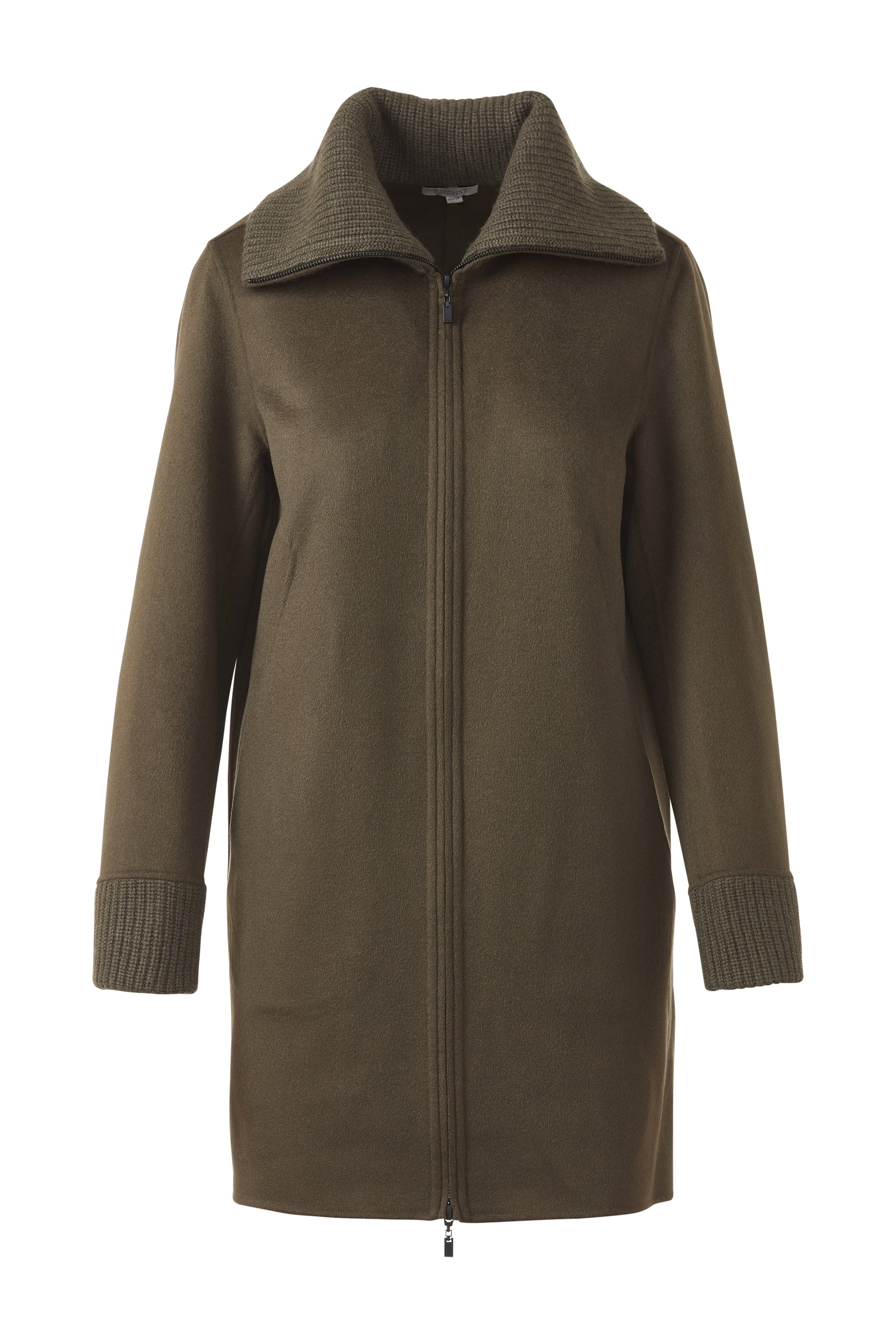 Knit Trim Zip Mock Coat