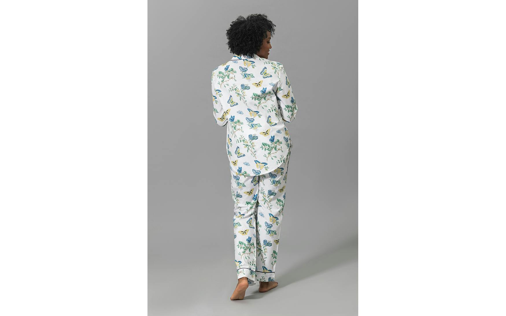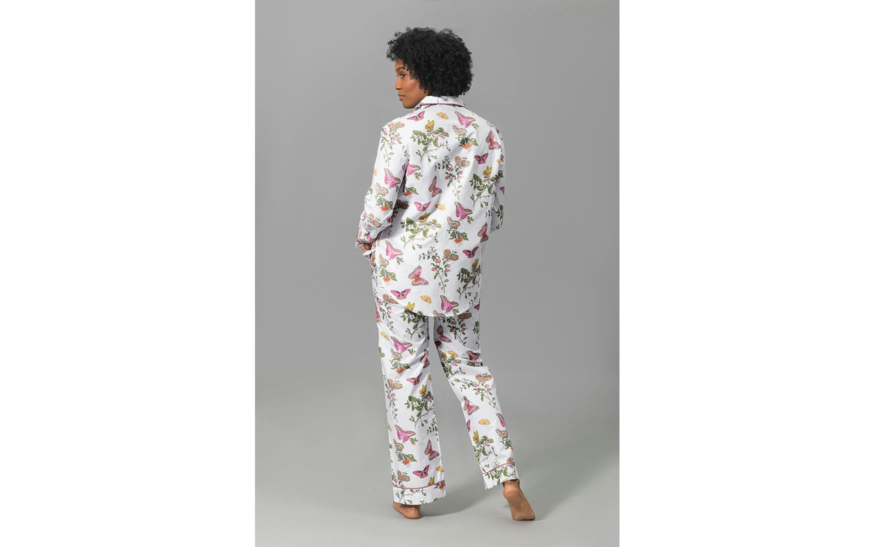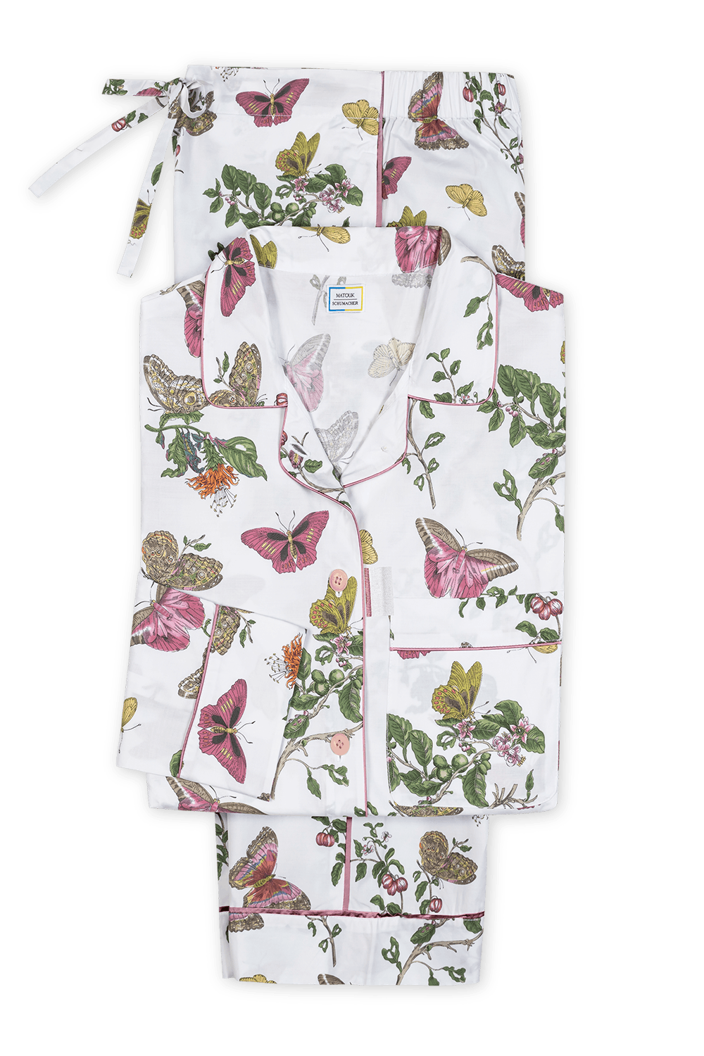 Crafted from our dreamy Luca cotton percale in a range of vibrant Schumacher prints, we’ve combined the luxury of Matouk sheeting with the comfort of your favorite lived-in dress shirt. The top features natural corozo buttons, piped details, and a scooped hem. The drawstring trousers have elastic in the back for extra comfort and a flattering fit. Beautifully tailored, these pajamas are just as chic outside the house as they are in the bedroom.