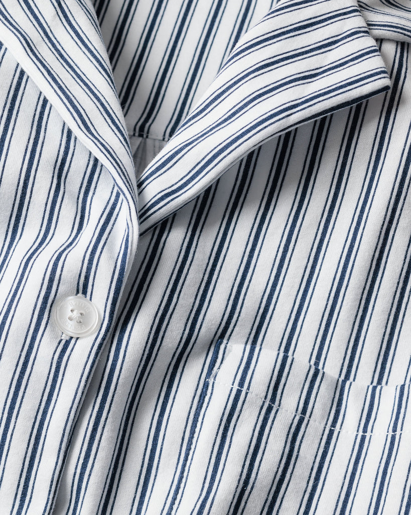Oliva Wide Leg Pima Pajama Set - Navy French Ticking