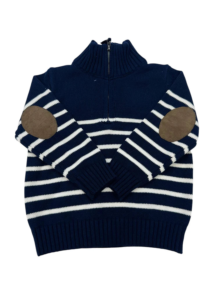 Introducing our Half Zip Striped Sweater made from 100% soft and durable cotton. Stay stylish and cozy with the added option of a custom monogram.