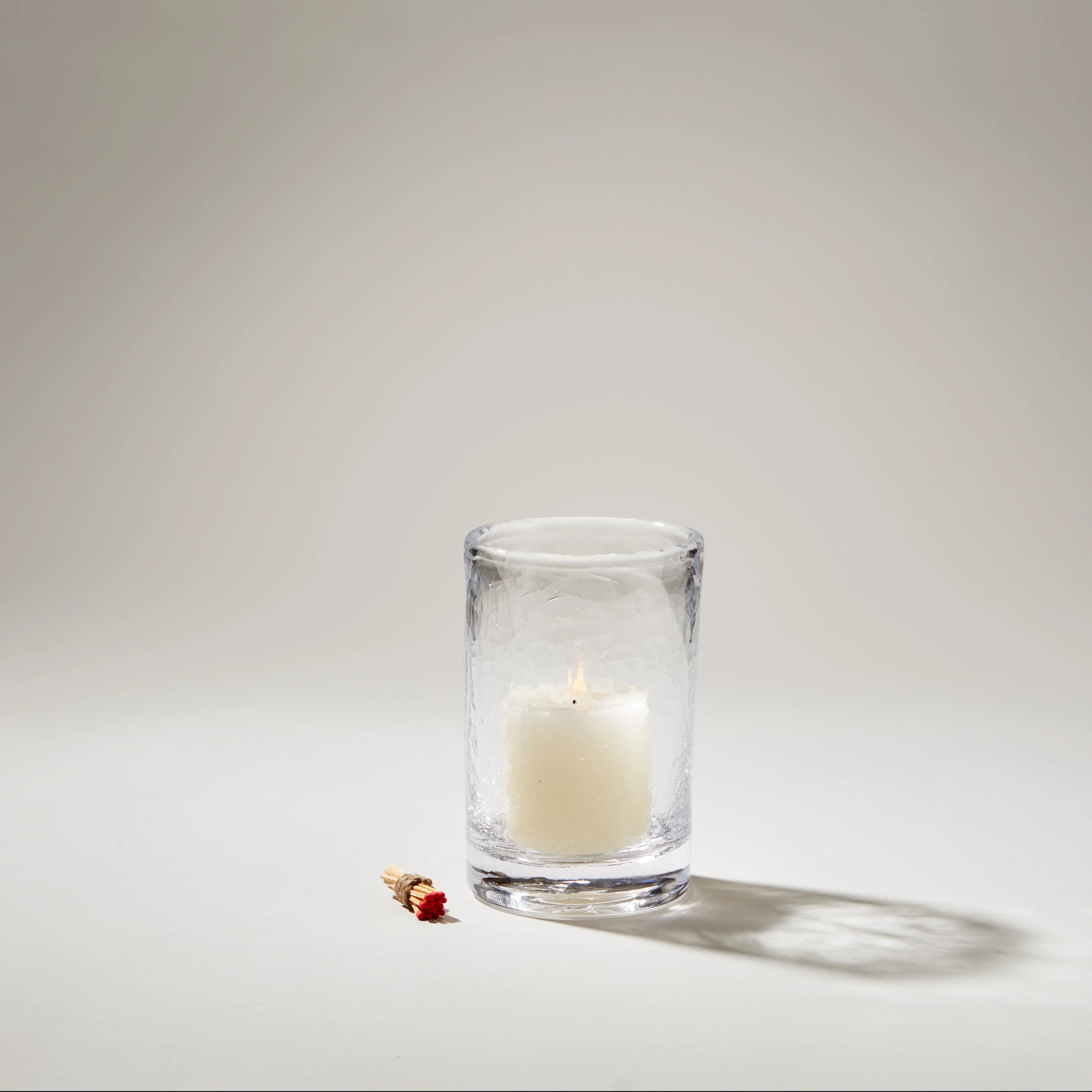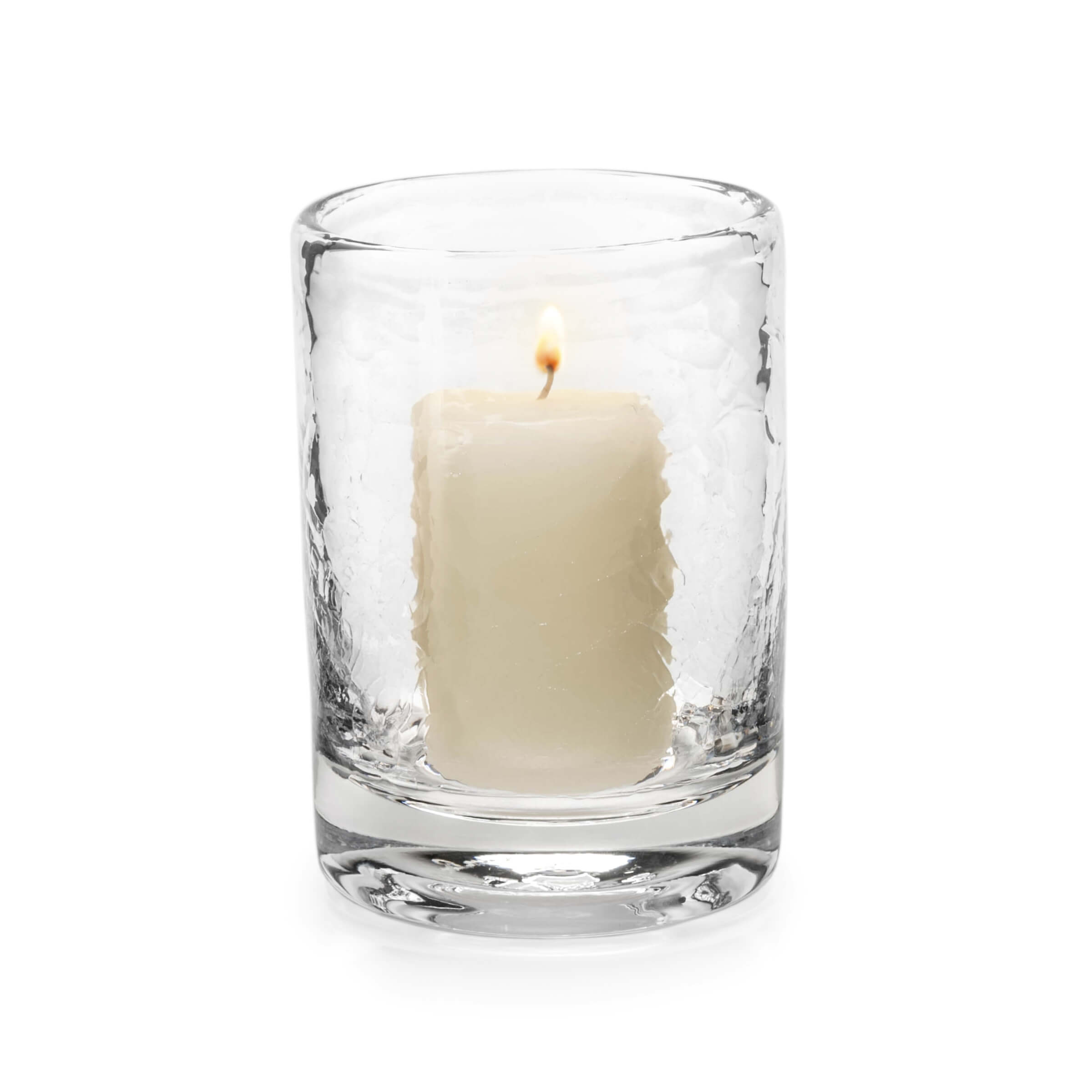 Based on the balanced proportions of our bestselling Ascutney Collection, we’ve updated this clean-lined cylindrical glass hurricane with a textural crackle effect. Carefully crafted by shocking hot glass in a bath of cool water, the beauty of this technique is made even more brilliant by illuminating from within.