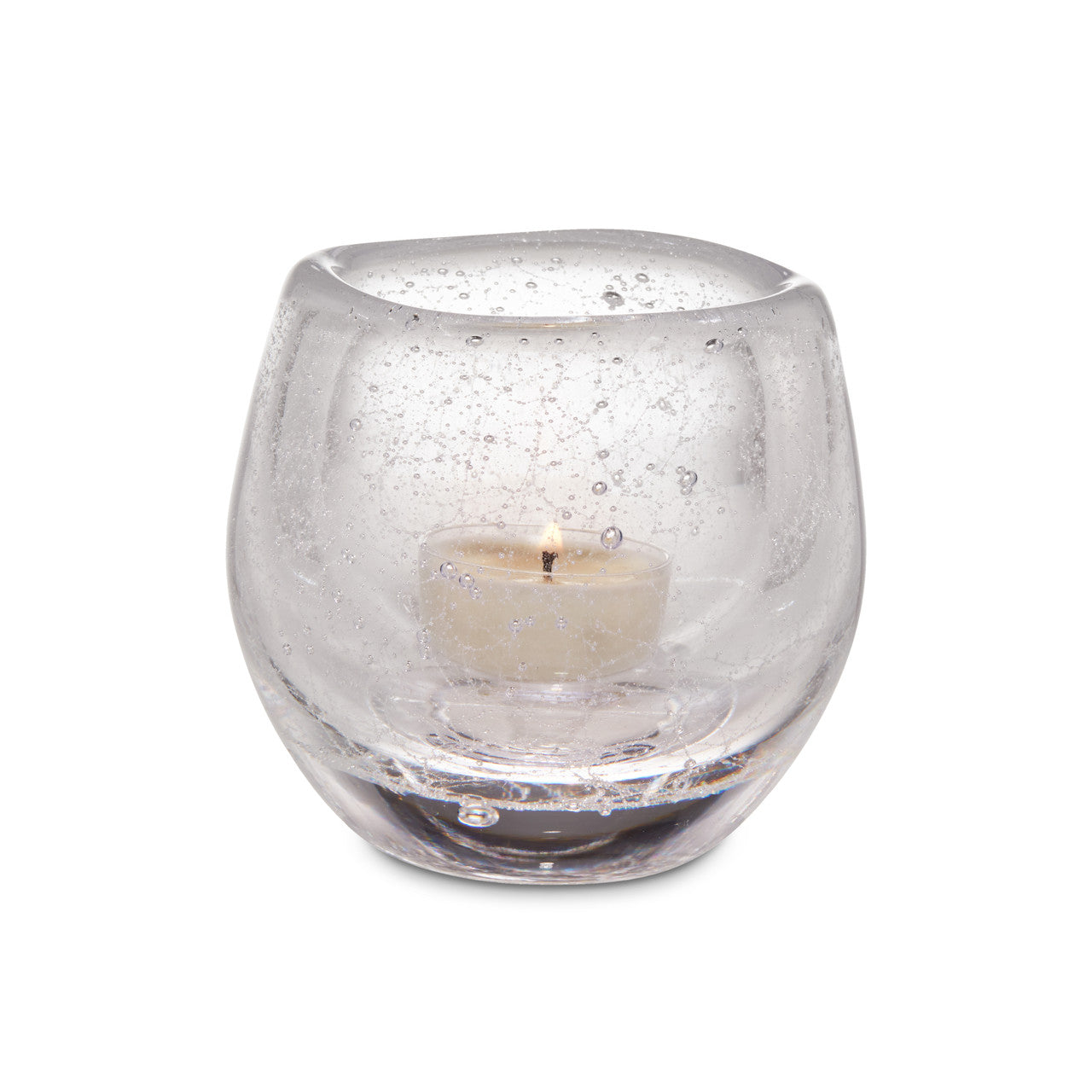 Burlington Vela Tealight. We’ve given our Burlington tealight a frosty, finely bubbled effect that adds even more nuance and handmade appeal. This design is alive with free-flowing lines and a texture that becomes magical when illuminated from within.