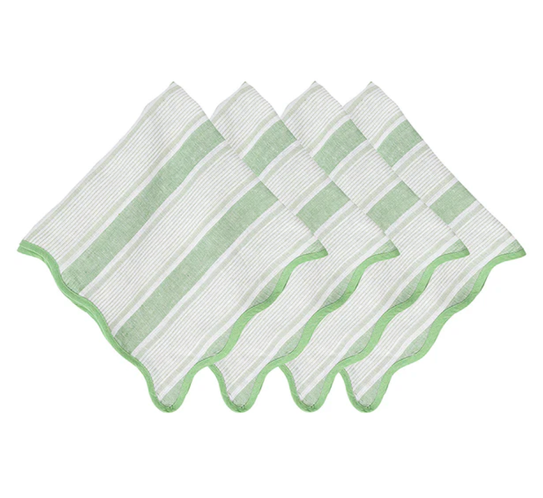 Inspired by idyllic days beside the sea, happy-up any table setting with classic cabana stripes of pure, crisp, breezy linen in candy-colored, sun-drenched hues. Beautifully finished with a scalloped trim for a touch of casual elegance.