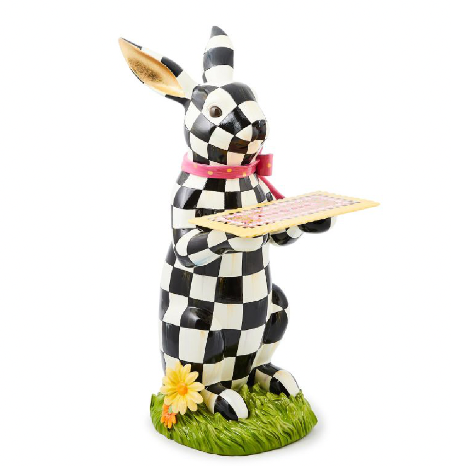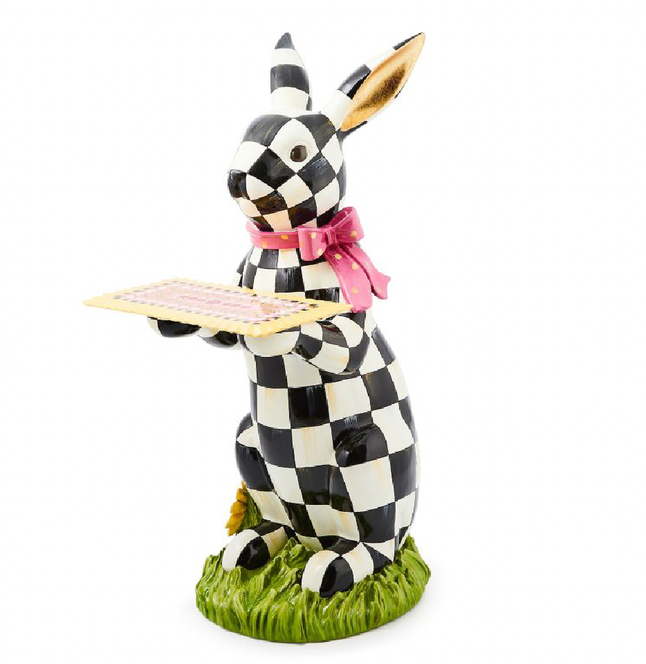 The MacKenzie-Childs Calico Rabbit Butler brings a sophisticated touch to your home. Resin with ceramic tray is a testament to the artisanal craftsmanship of MacKenzie-Childs, making it an eye-catching addition to any room.