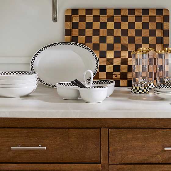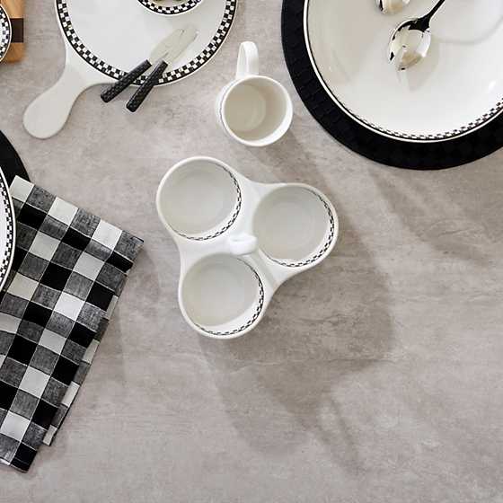 Bring home your new go-to entertaining essential with our anything-but-basic Courtly Check Everyday Trio. Designed for everyday use, it's finely crafted from durable made-in-Portugal stoneware that’s both dishwasher- and microwave-safe and decorated with hand-applied Courtly Check transfers. Pair this style with other pieces from our Everyday collection or mix and match for a truly unique tabletop.