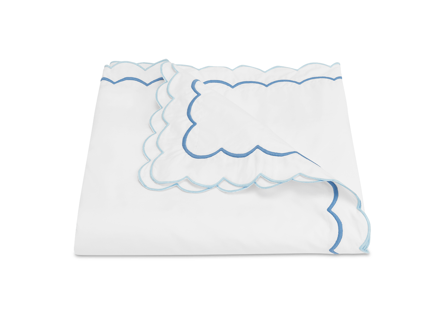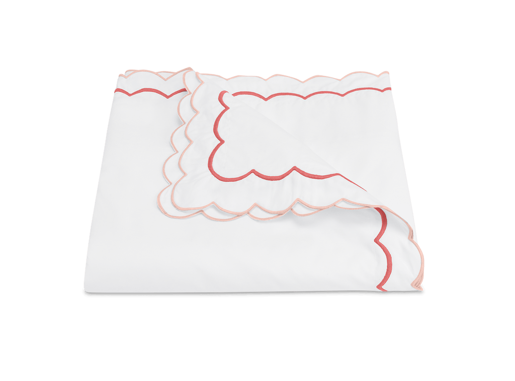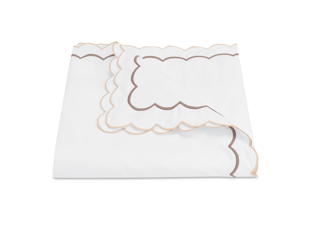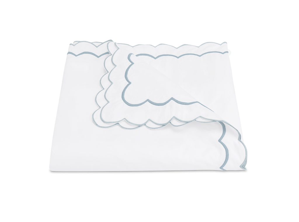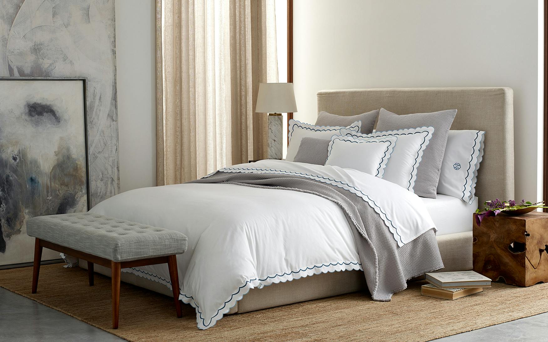 India owes its playful sophistication to an original take on embroidery. Along its narrow, scalloped flange are two carefully stitched lines in distinct tones. Our 520 thread count Ceylon percale is the base fabric for this sweet, elegant collection.