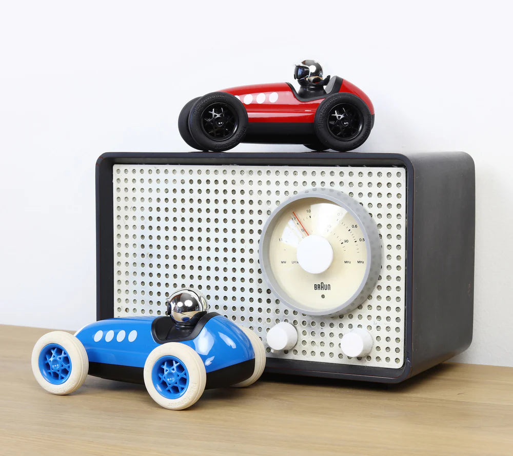 We are excited to introduce Loretino Marino racing car - a cute and playful scaled-down version of its big brother (and the very first car in the Playforever collection), Bruno. In bright and vibrant red with contrasting black rubber tyres, Loretino Marino is living proof that size is not everything. Lightweight and easy to hold, yet built to last, just like all Playforever products it is beautifully designed andbuilt to last a lifetime. A classic heirloom treasure that can be passed on and played with for generations. Also available in blue and black.