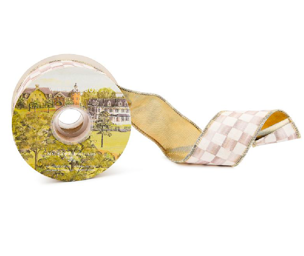 Whether tied on gift boxes or around a special bottle of wine, you’ll find no limit to the uses for our Mocha Check 2" Ribbon. With linen-finish checks on one side and festive gold on the other and wired edges for easy shaping, you’ll need a couple of rolls, at least!