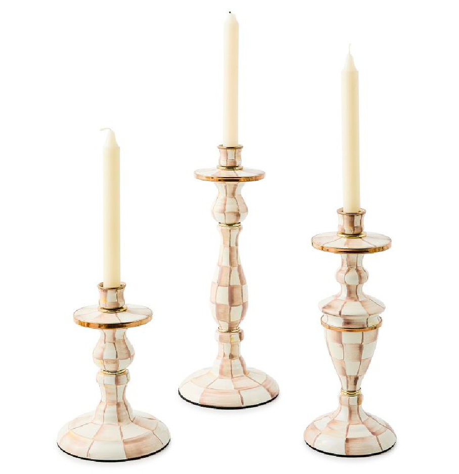Mocha Check Small Candlestick