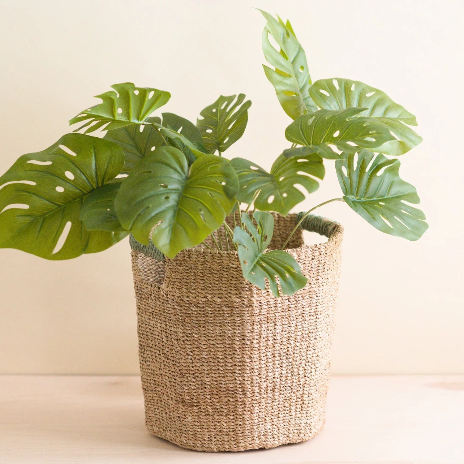 The uniquely shaped octagon natural woven basket features a pop of color with its sage handles. Use it to store everyday objects or your favorite houseplants. Our all-around handwoven baskets are stylish and functional, adding a natural vibe to just about any room. Display individually or pair it with other baskets for more impact. Each piece is carefully handcrafted by artisans in the Philippines, and made sustainably with manila hemp. Every purchase goes towards empowering our artisan communities. Since each piece is handwoven, please expect slight variation in design, color, shape, and size.