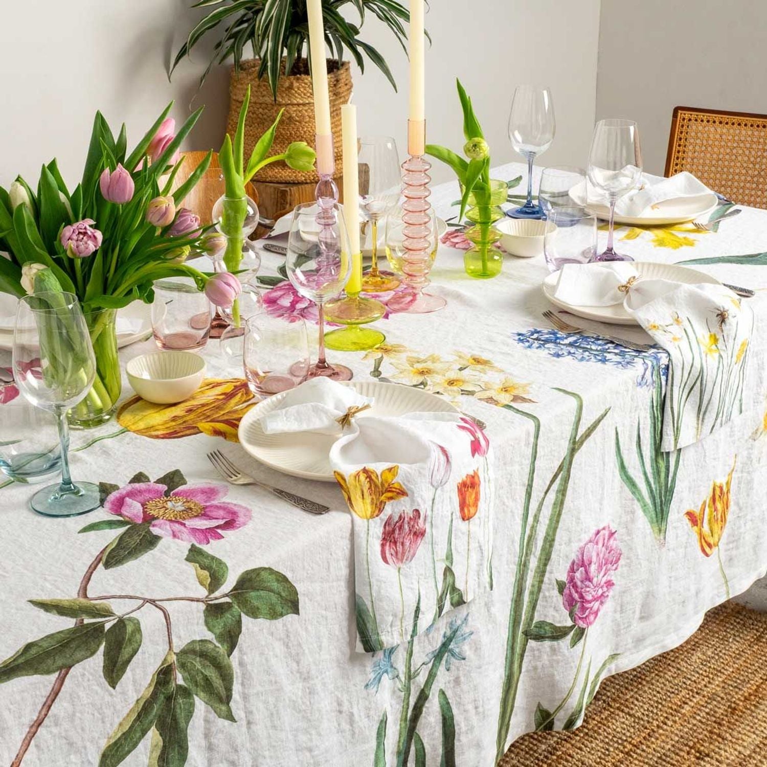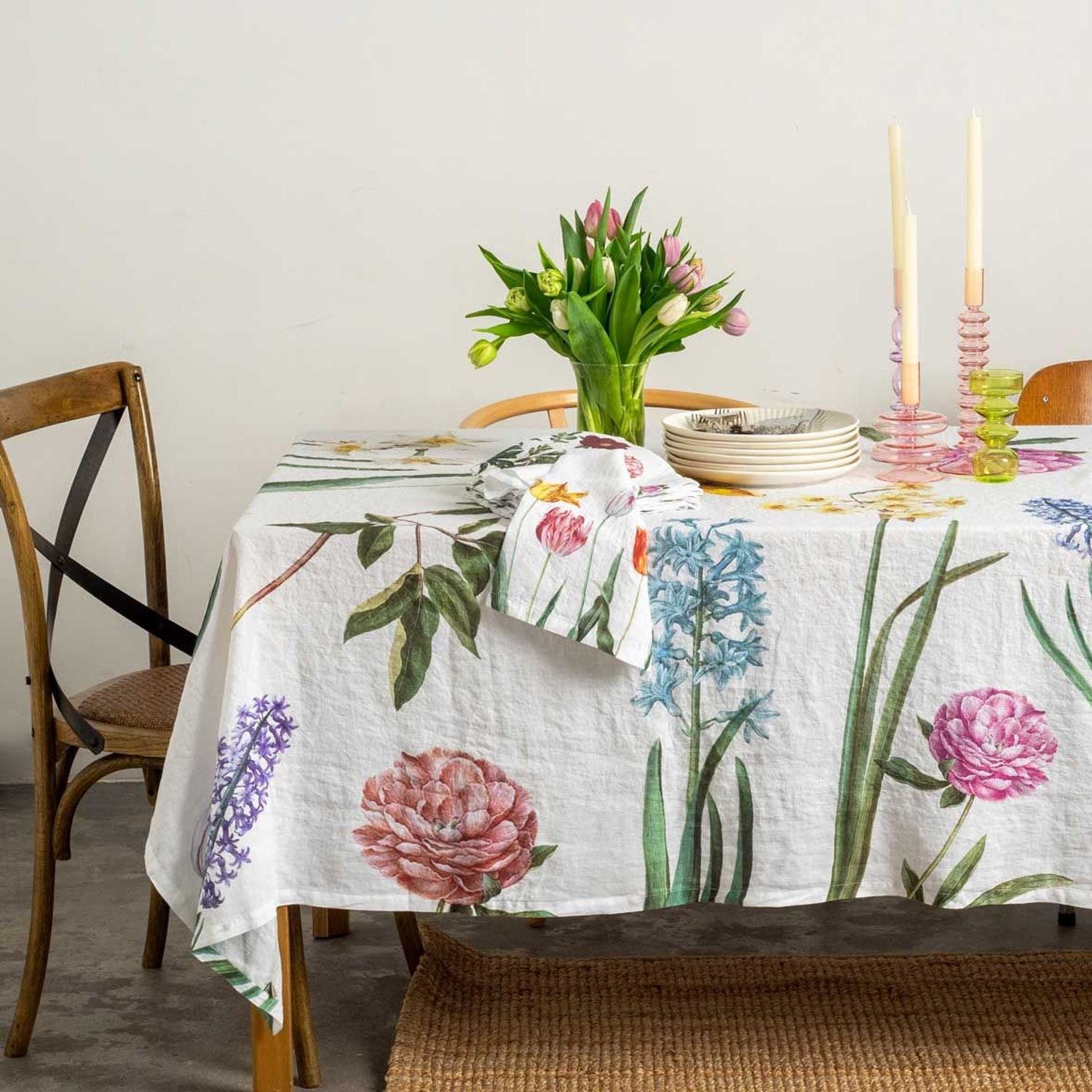 Linen tablecloth with nature-inspired prints design will make your table look special and colourful. Made from premium washed linen. Designed and produced in the EU. Linen is naturally antibacterial, hypoallergenic and safe for people with allergies or sensitive skin. Linen is a durable material: water-saving, residue-free, durable. Eco-friendly shade is used for design printing.
