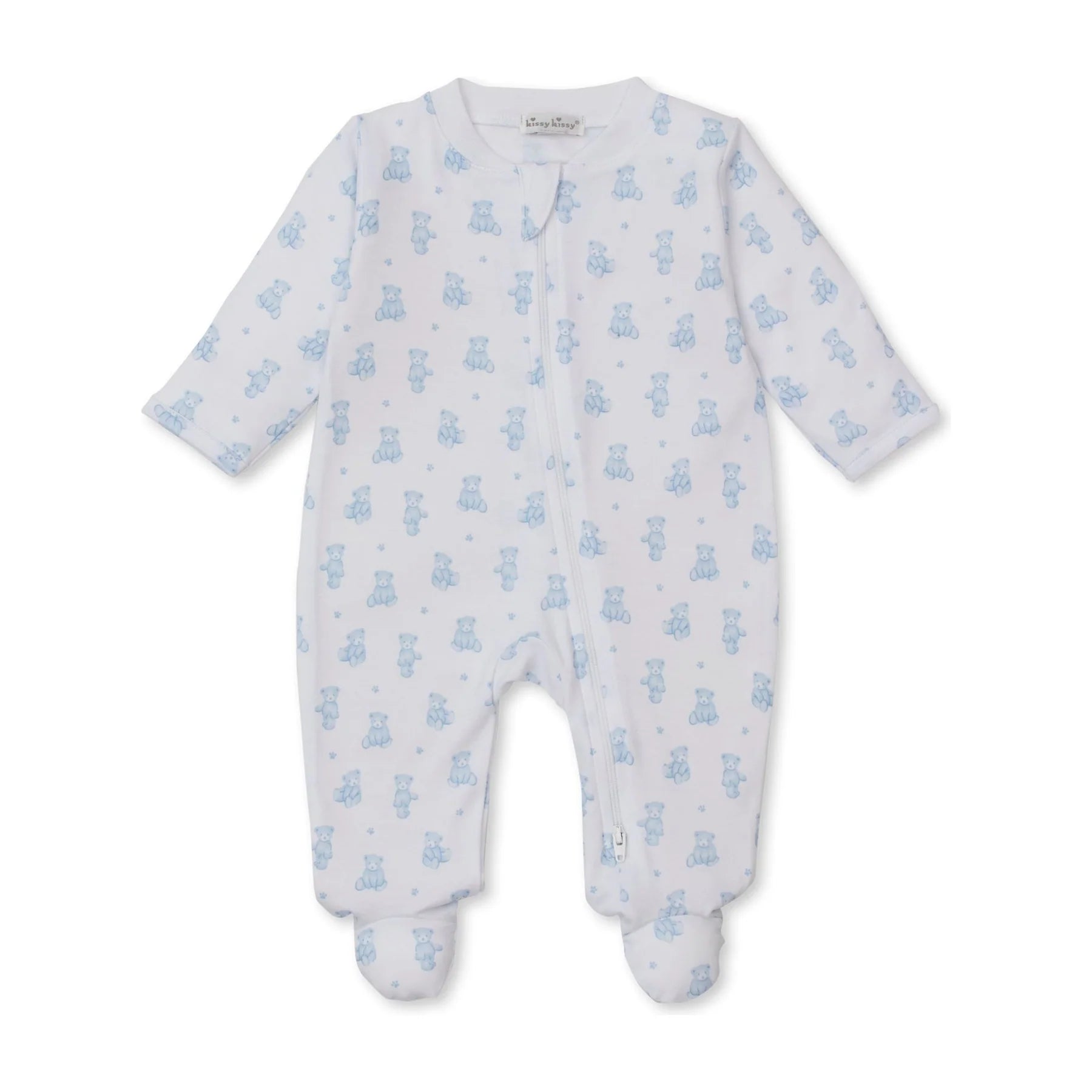 Teddy Bear Time Zip Footie-Light Blue
