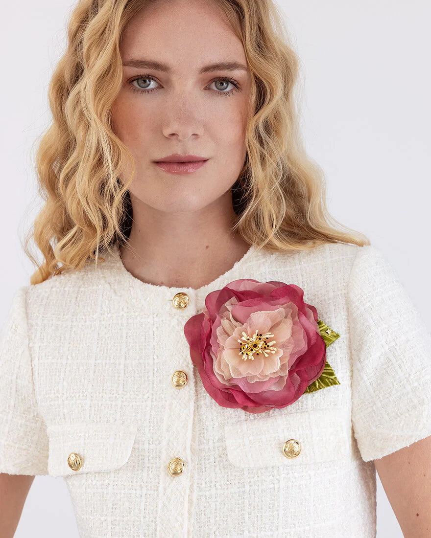 - Each fabric brooch is one-of-a-kind, subtle differences in appearance from blossom to blossom are to be expected